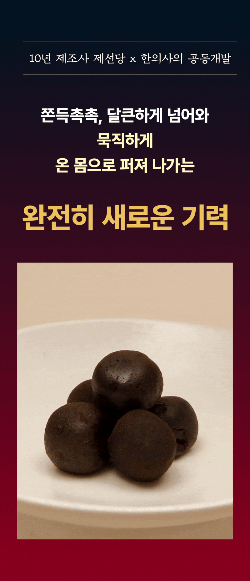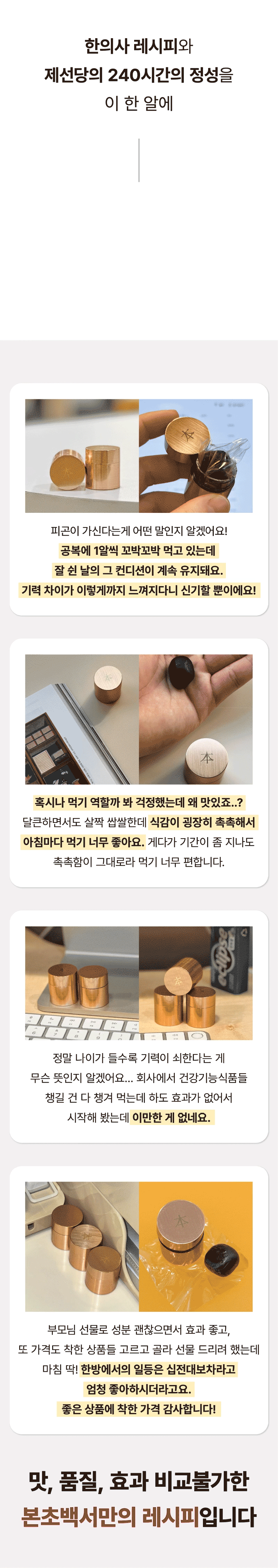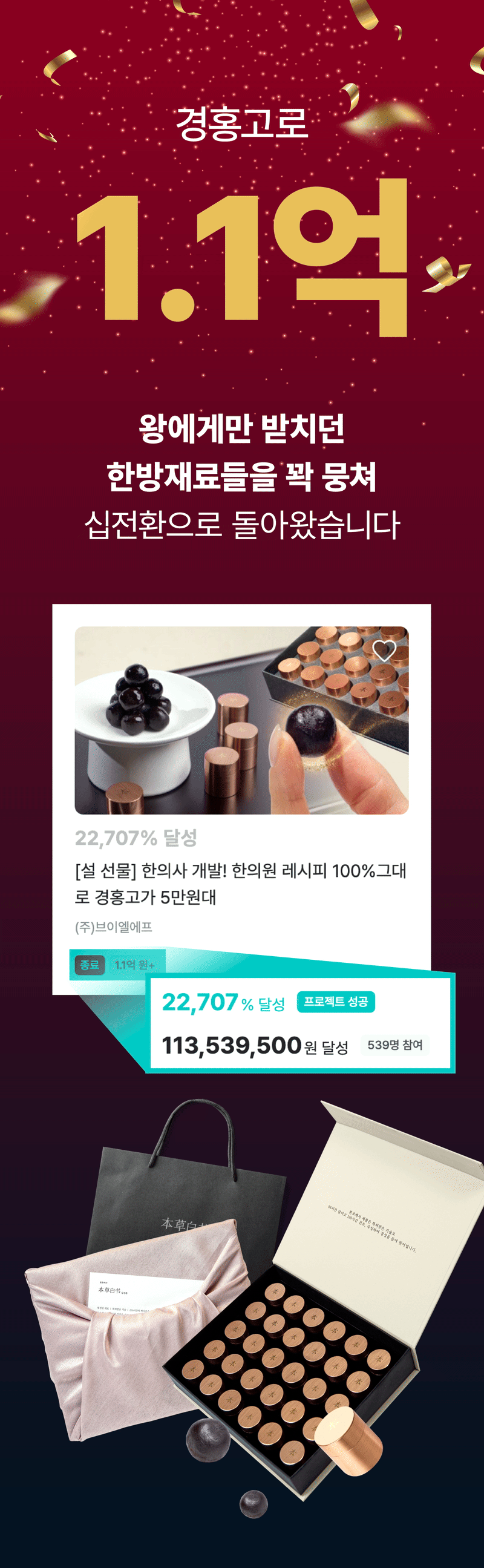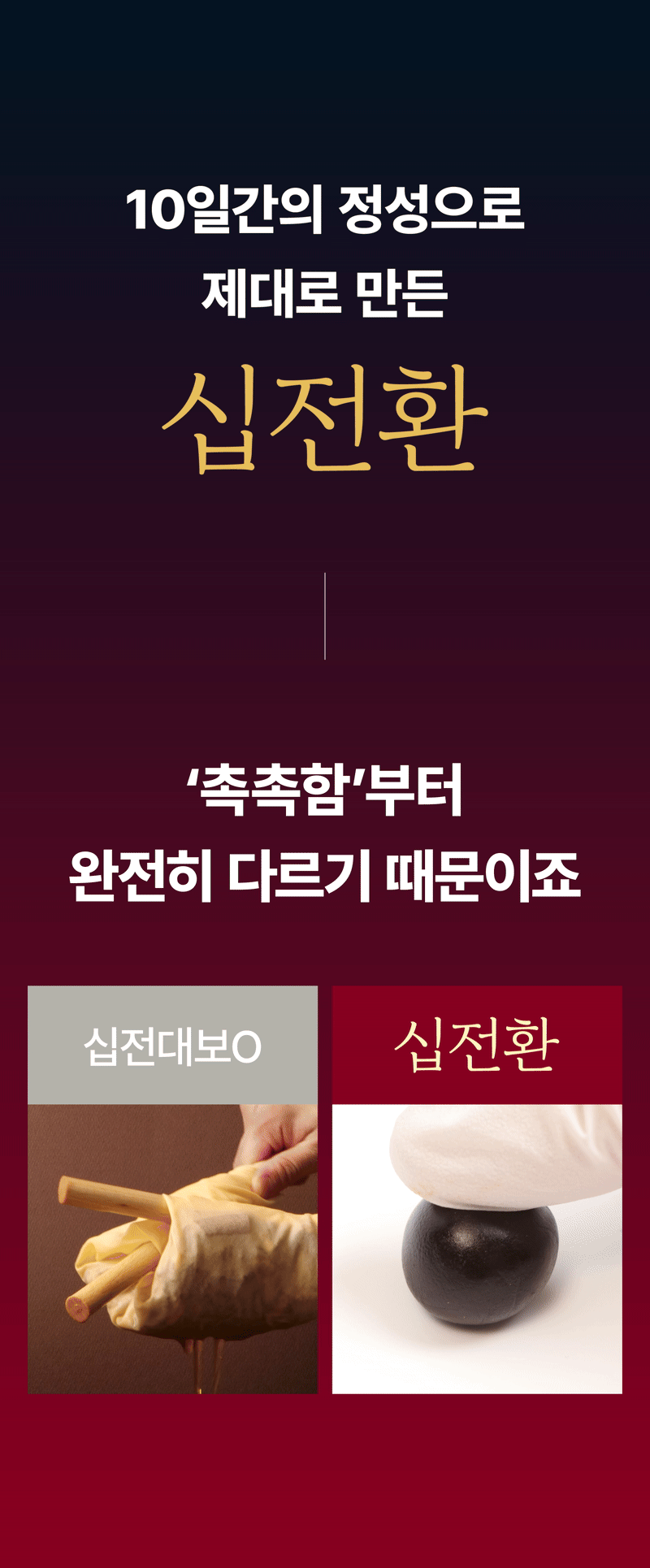 So this time, I wanted to show our supporters a product recognized for its patented technology called Sipjeonhwan. I confidently created it with the hope that many people could try this product, which is usually only available at oriental clinics, at a reasonable price and that everyone could be healthy. I hope it becomes a precious gift not only for yourself but also for your loved ones.