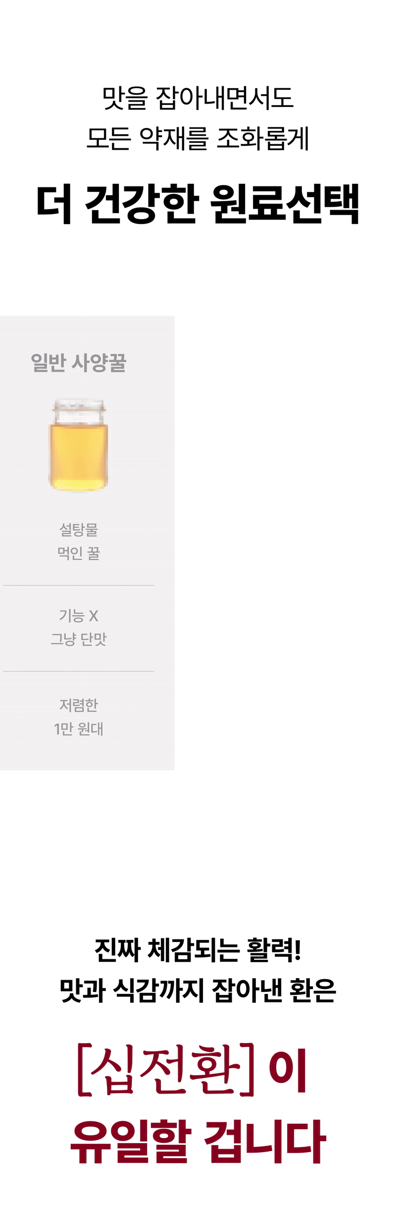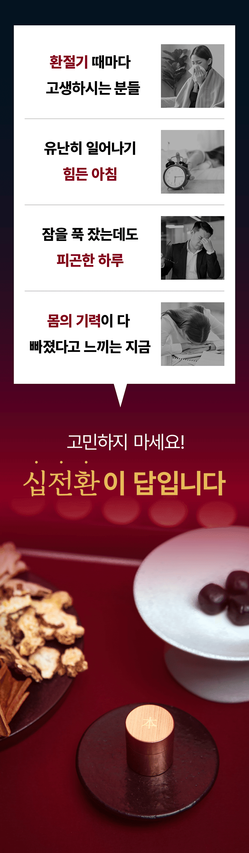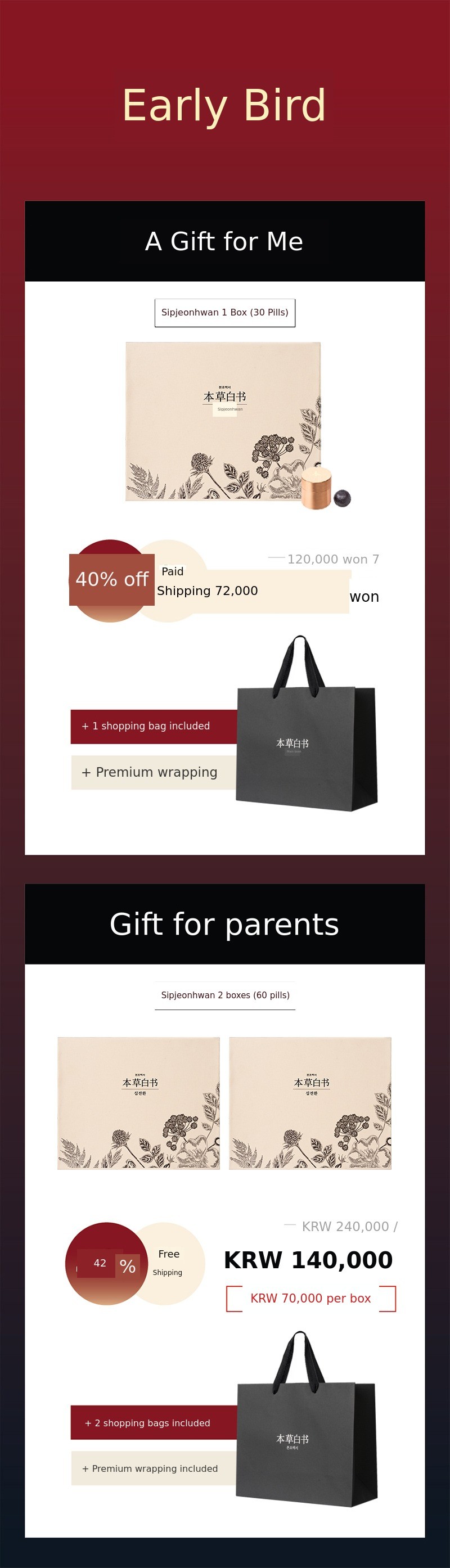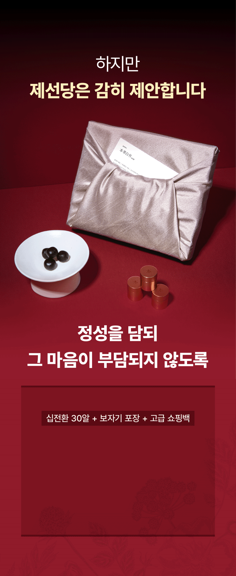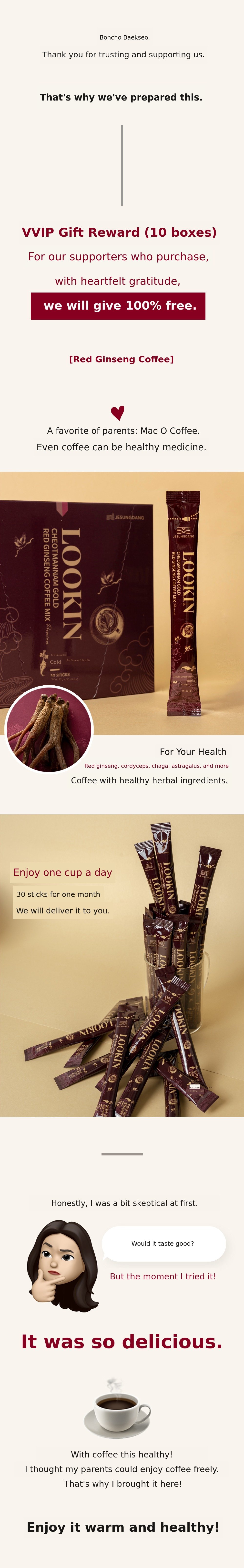 So this time, I wanted to show our supporters a product recognized for its patented technology called Sipjeonhwan. I confidently created it with the hope that many people could try this product, which is usually only available at oriental clinics, at a reasonable price and that everyone could be healthy. I hope it becomes a precious gift not only for yourself but also for your loved ones.