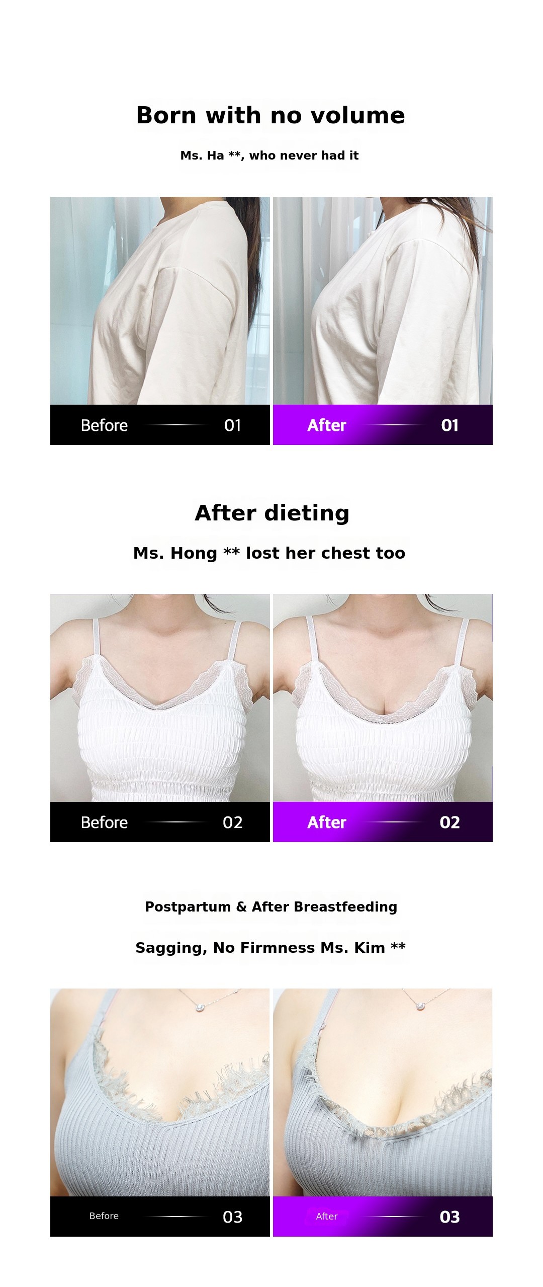 A. Sagging breasts after dieting, sagging breasts after breastfeeding,You can select and use various modes according to your breast condition and physical state, such as breasts that have lost elasticity due to childbirth or aging.