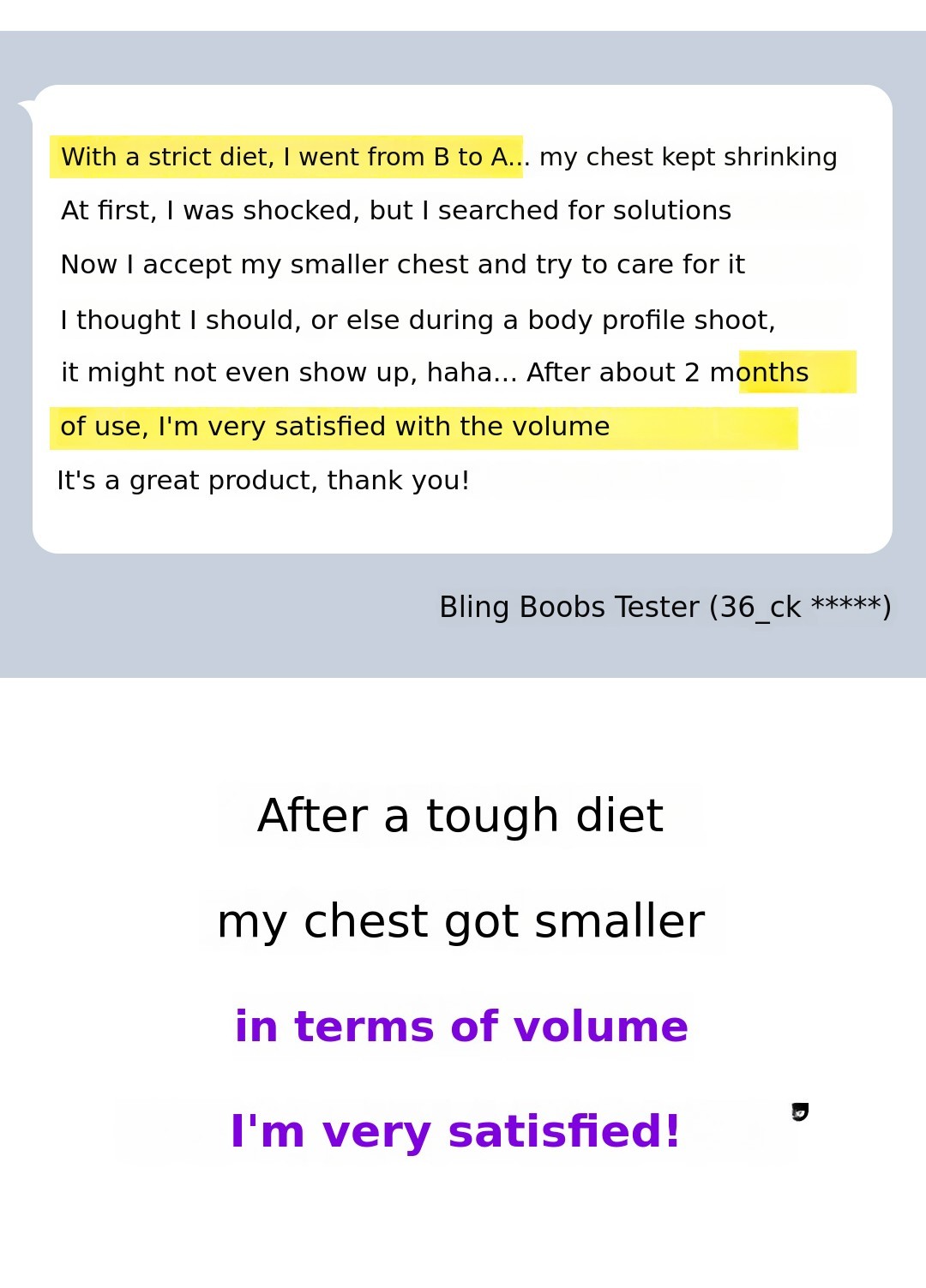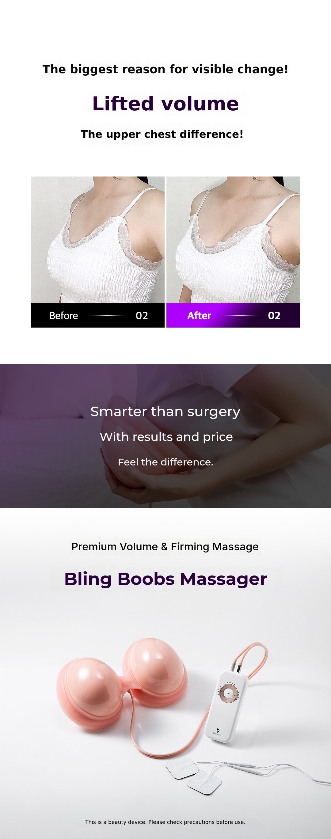 A. If you experience troubles or side effects while using Blingboobs products, you can return the product according to the Blingboobs return policy by submitting a medical certificate (diagnosis: side effects from negative pressure use, side effects after using Blingboobs breast massager).