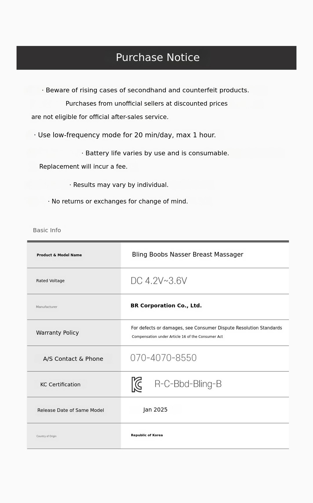 - Contact: Inquiries through BR Corporation (main number 070-4070-7550) - In the following cases, refund, exchange, or free A/S for the funding amount is not possible.