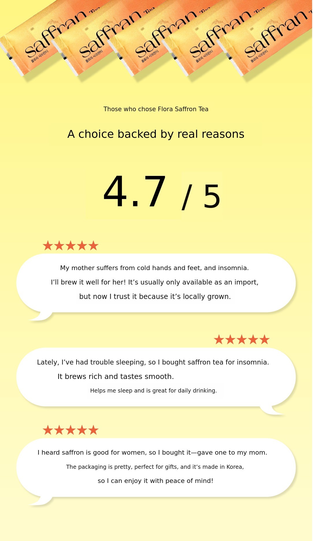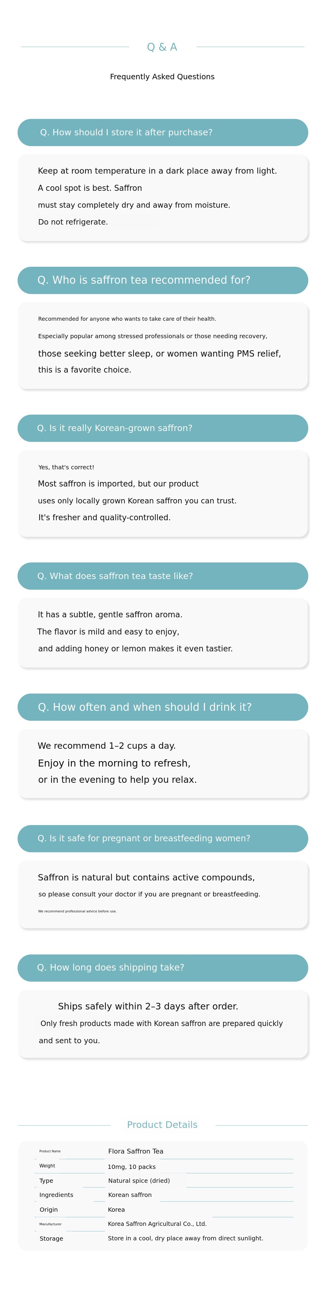 Most saffron is imported from overseas, and due to unknown manufacturing dates, hygiene, and freshness, many people cannot fully enjoy its benefits despite its high price.