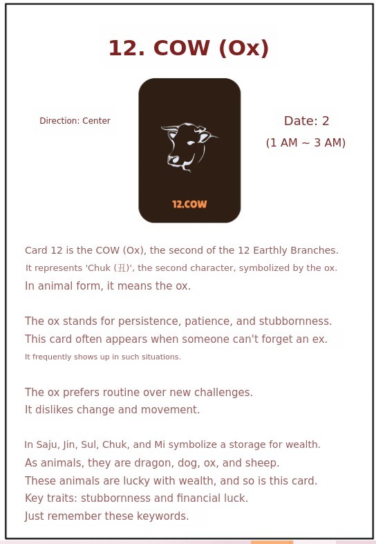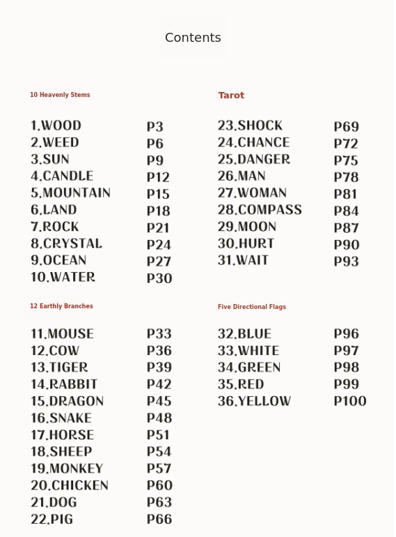 - Oriental tarot cards that represent the 10 Heavenly Stems and 12 Earthly Branches of Saju as physical objects.