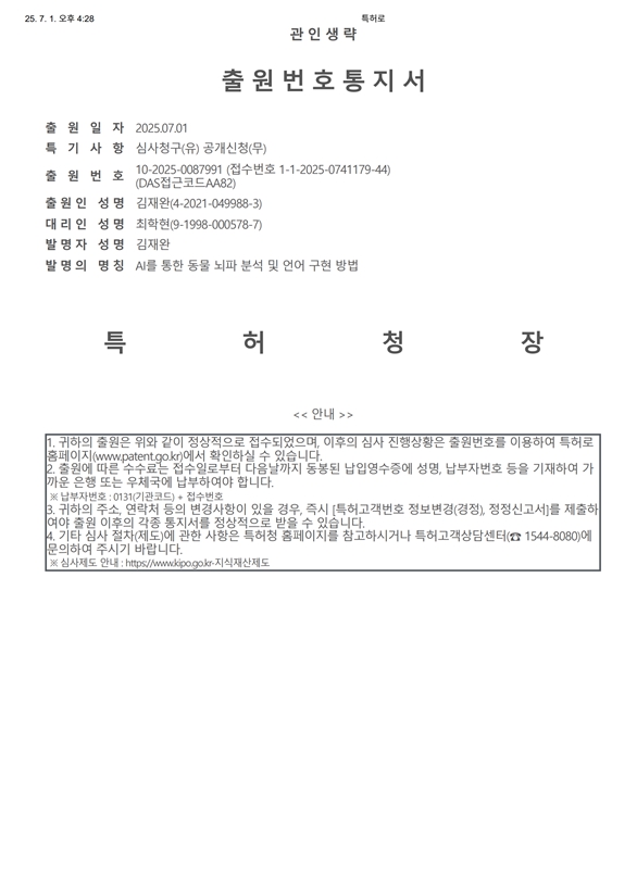 * AI Learning: AI collects and learns large-scale data of brainwave patterns that appear in specific situations (e.g., play, rest, anxiety, pain).
