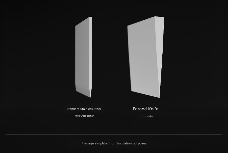 Typical forged knives contain a lot of carbon and are thick, so they inevitably become heavy.