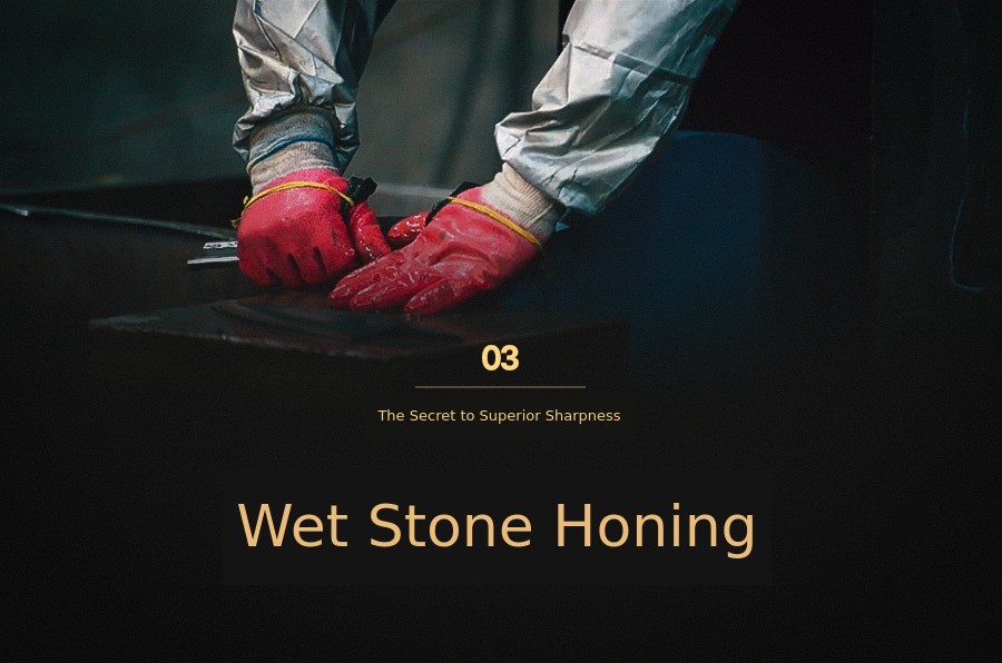 Wet whetstone sharpeningprevents the blade from heat damage and,allows for sharp sharpeningto be achieved,and is a valuable traditional technique that increases cutting power and edge retention.