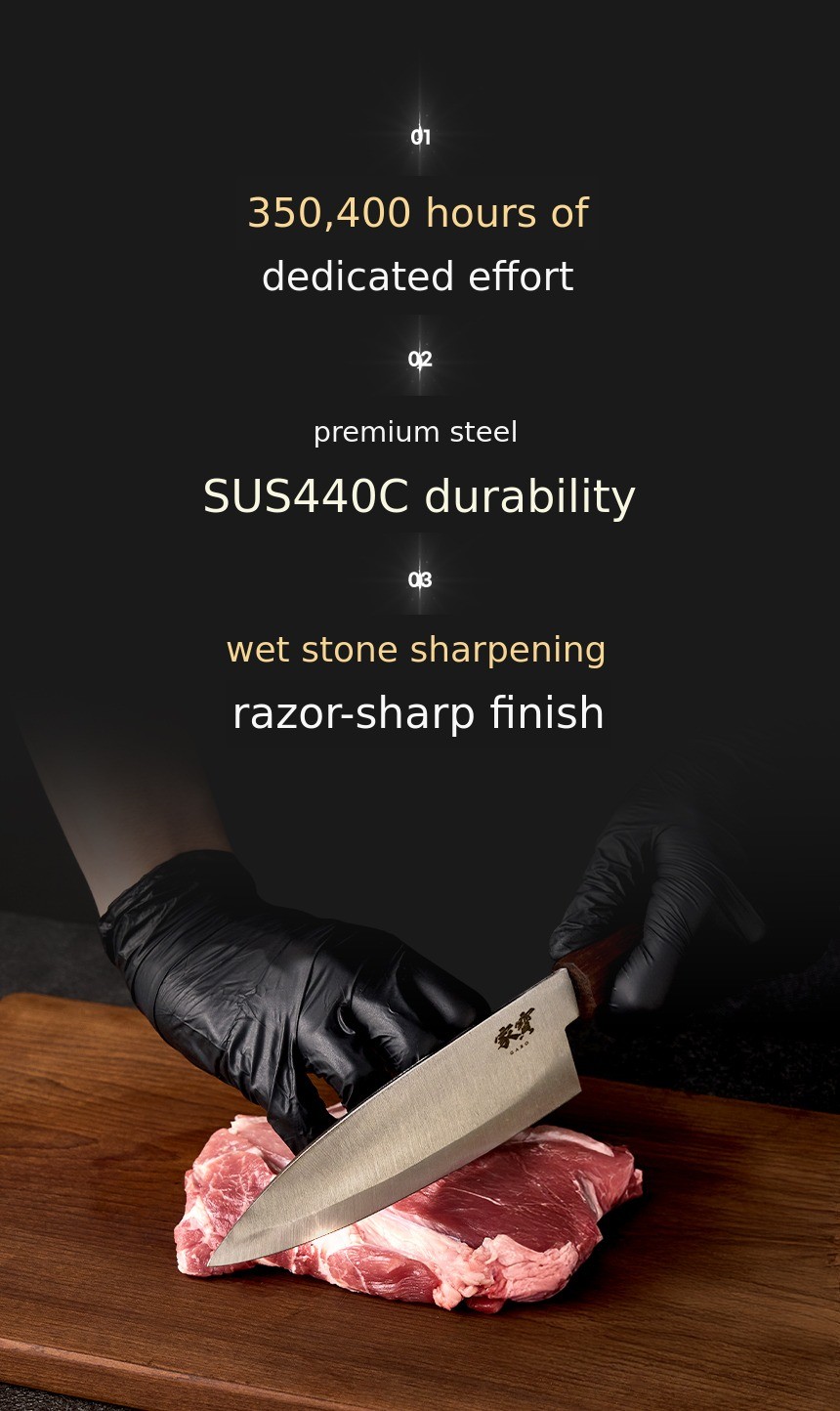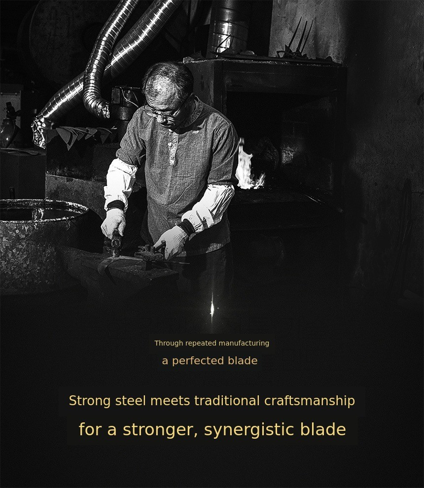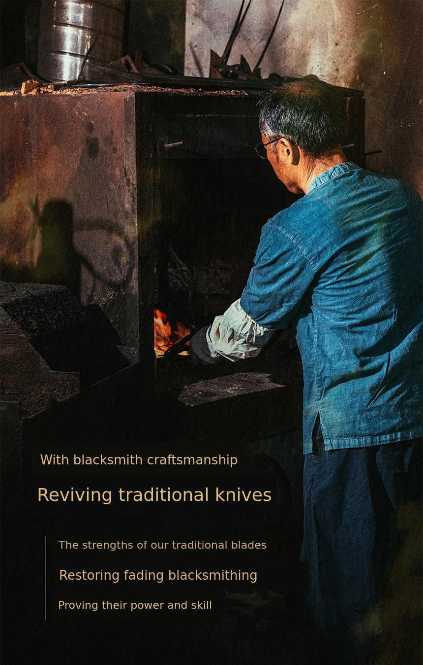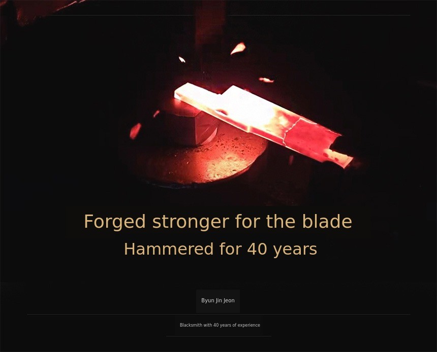 For 40 years, whether in the cold or heat, striking iron in front of a furnace exceeding 1,200 degrees,The strength and skill acquired by hand are fully embodied in the artisan's knife, boasting a quality incomparable to ordinary knives.