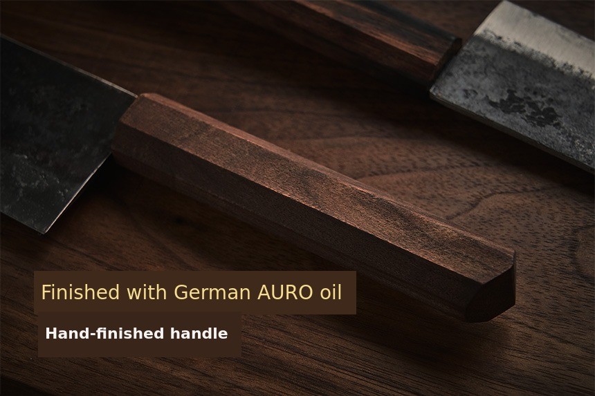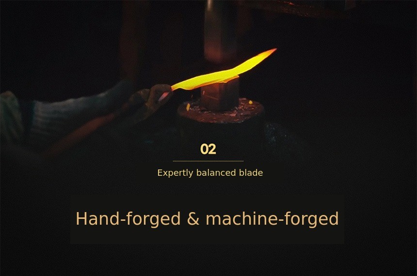Hand-forged by striking more than 1,000 times in front of a furnace over 1,200 degreesHand forging andmachine forging are tasks that require advanced skills to balance the knife.