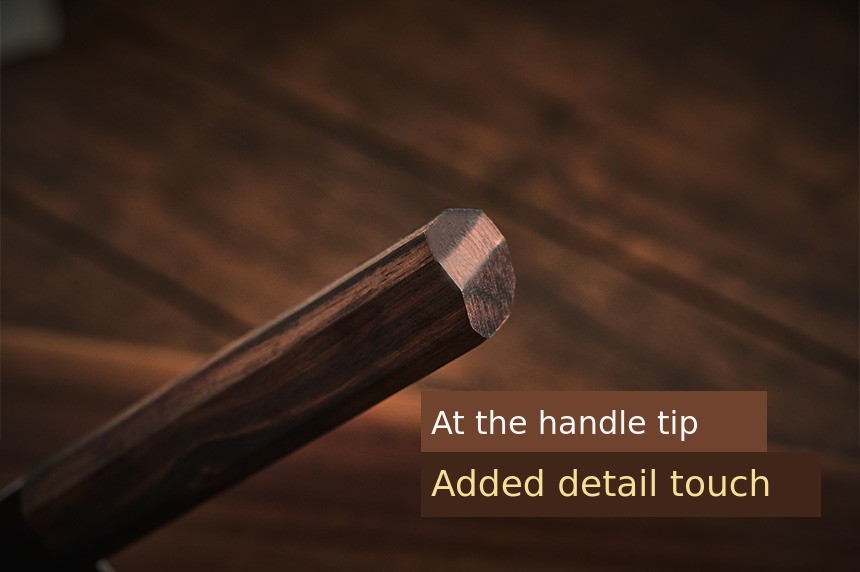 Based on the know-how and experience gained from developing and producing tens of thousands of knives,it is crafted with an octagonal handle that reduces wrist fatigue. The octagonal handle is less slippery than a round one.The octagonal design has the advantage of being less slippery than a round shape.