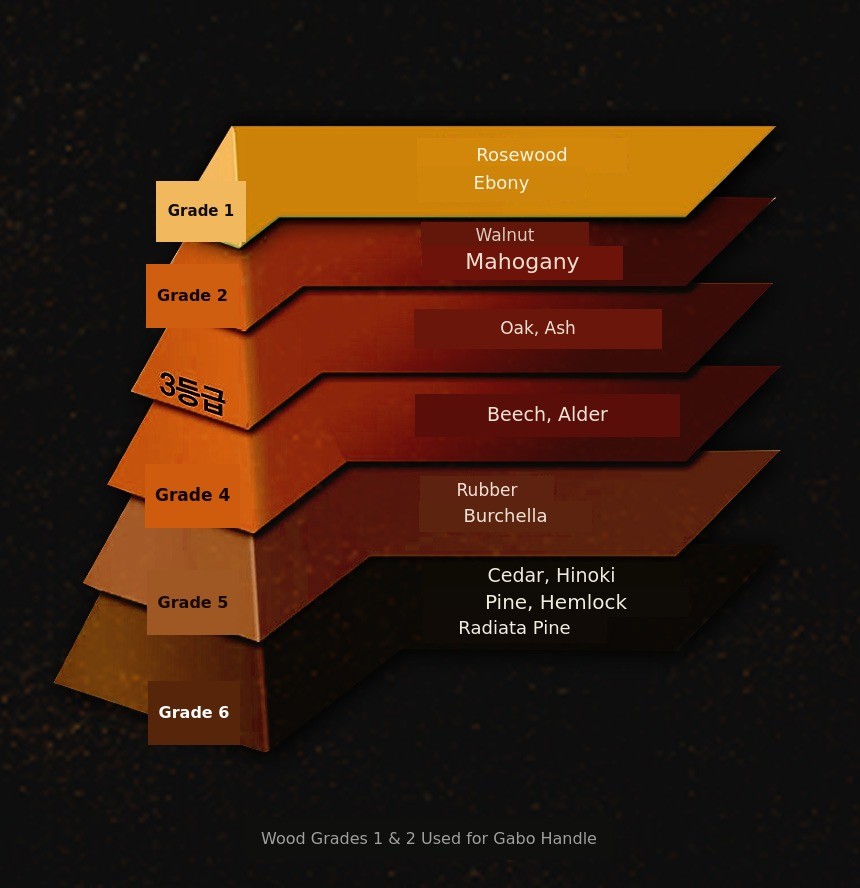 Ebony, the highest grade on the solid wood grading scale crafted withThe ebony-type handle is the only wood with such high density that it sinks in water..