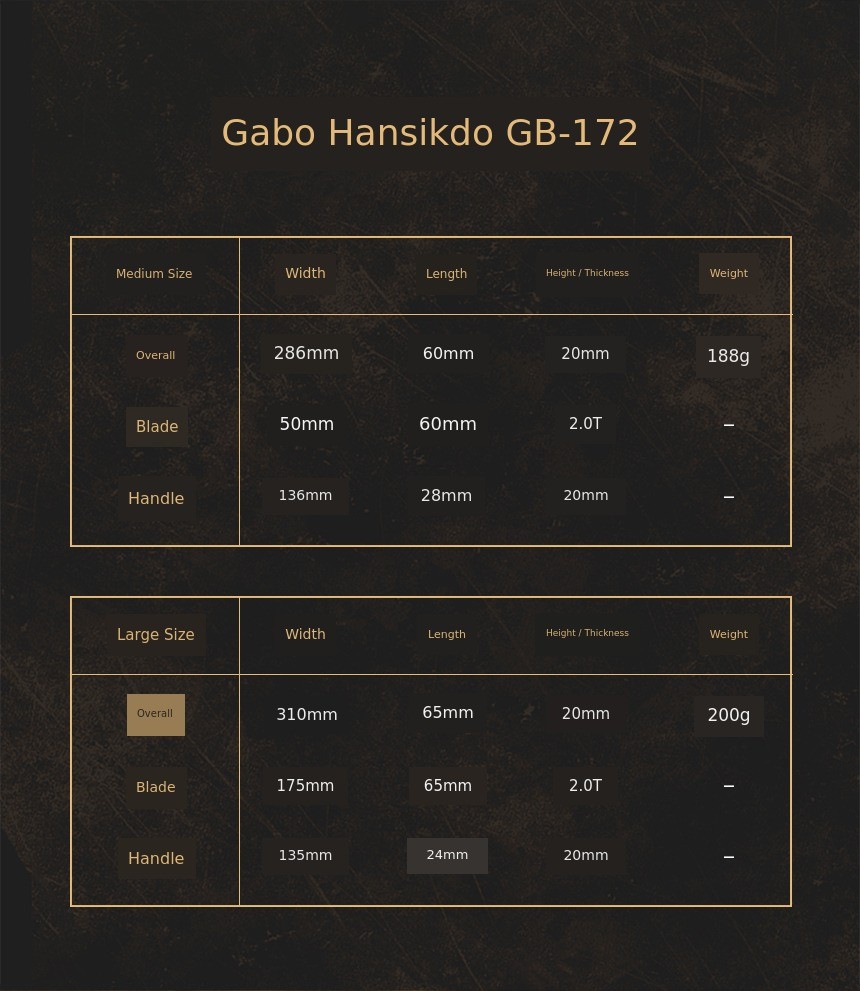 The steel is also the same SUS 440C as used in Gabo Hwanddo and Suksudo. Please note that SUS 440C is currently difficult to manufacture outside of Gabo.