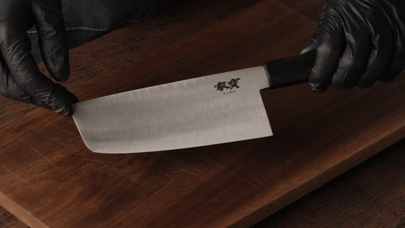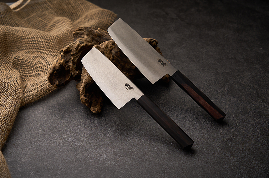 Compared to the very thin and straight cross-section of a stainless steel knife, the Gabo forged knife has a thick triangular shape that becomes sharper from the spine to the edge, providing a stable blade.