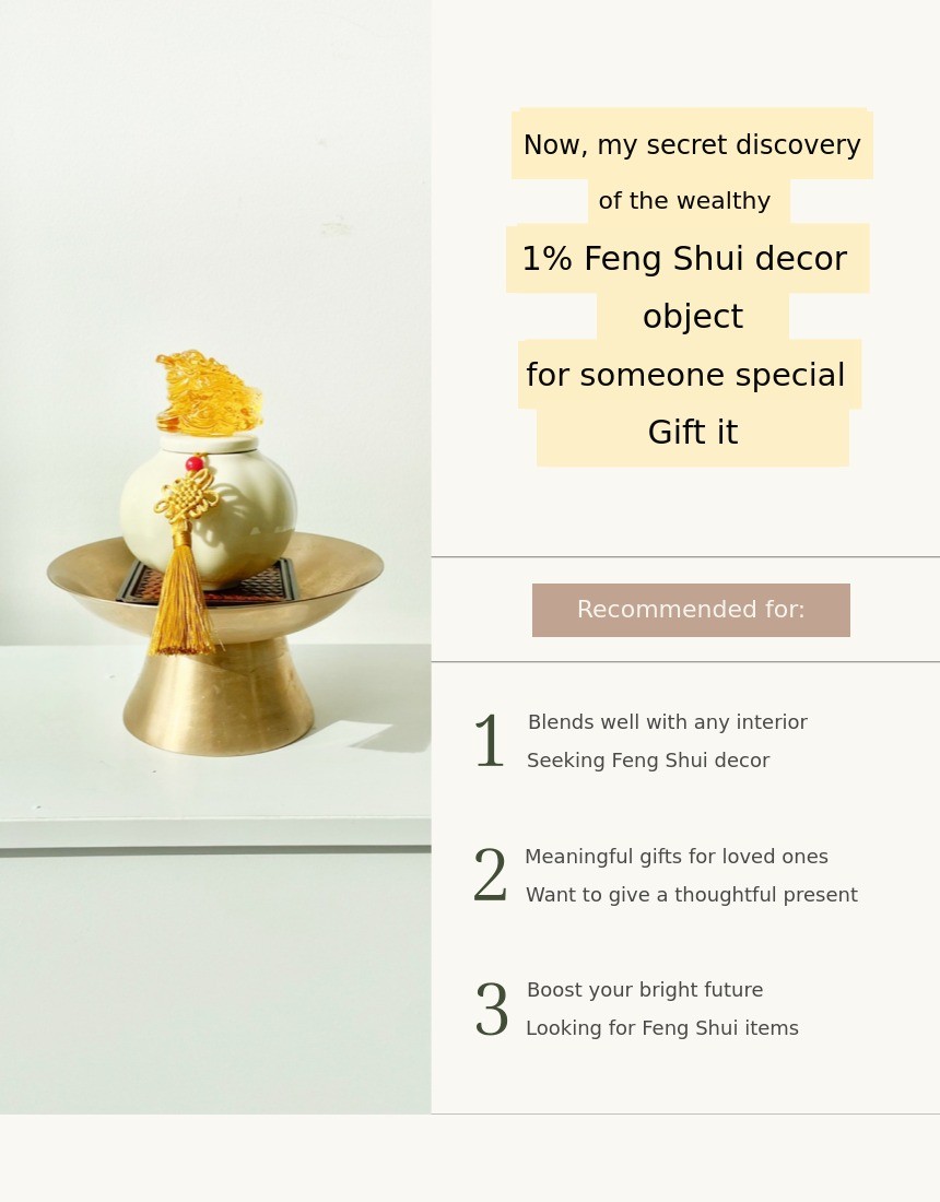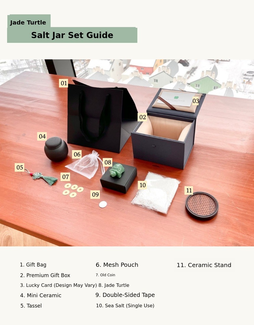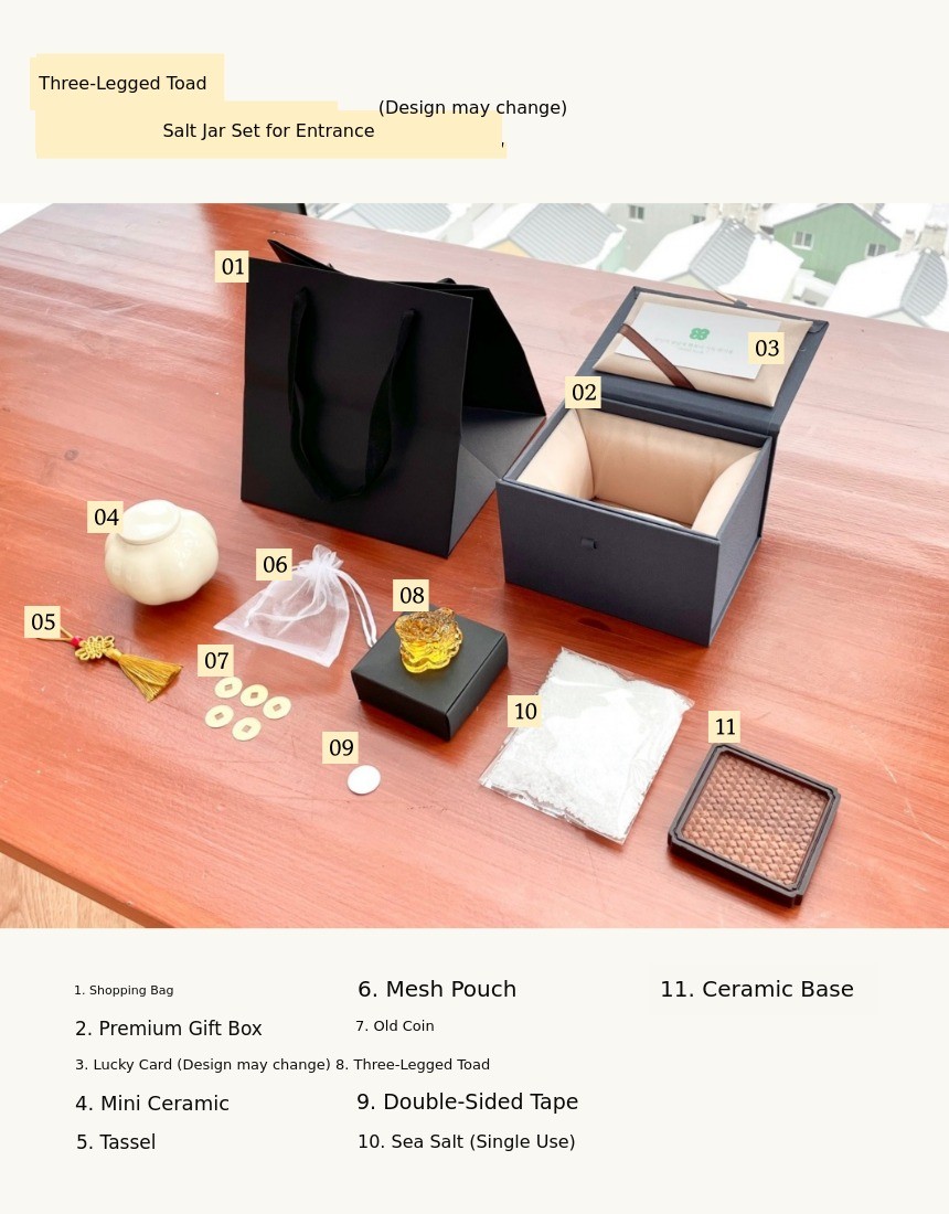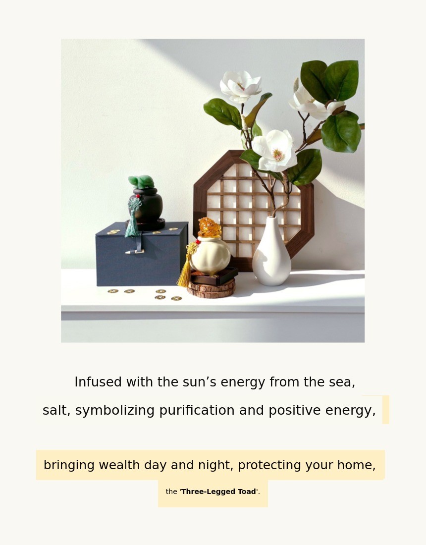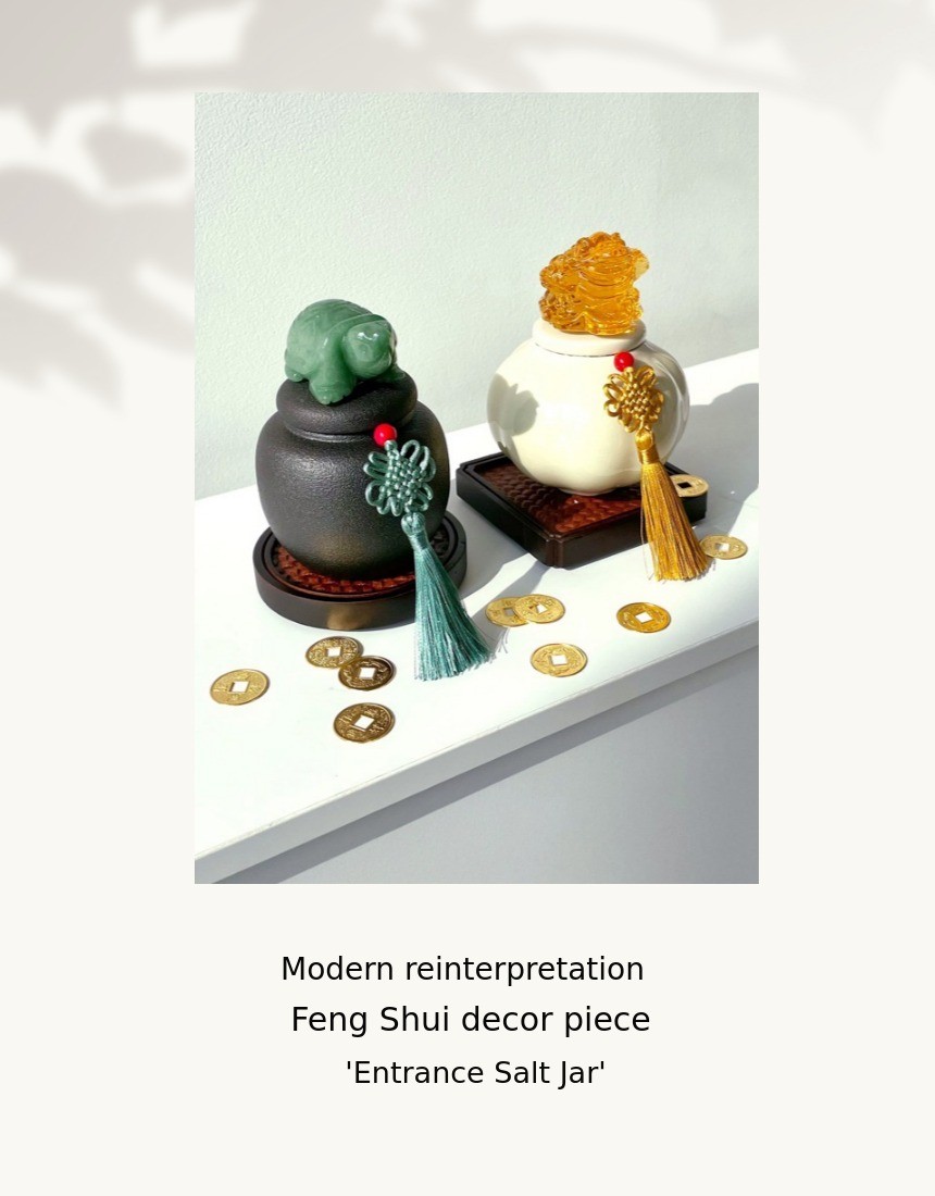 1. π Feng Shui Entrance Salt Jar - A modern-traditional interior piece symbolizing wealth and prosperity 2. π§§ 1% Wealthy Feng Shui Secret - Enhances home fortune with three-legged toad and jade turtle motifs 3. π Premium Gift Set - Includes lucky cards, mini pottery, and early bird discounts