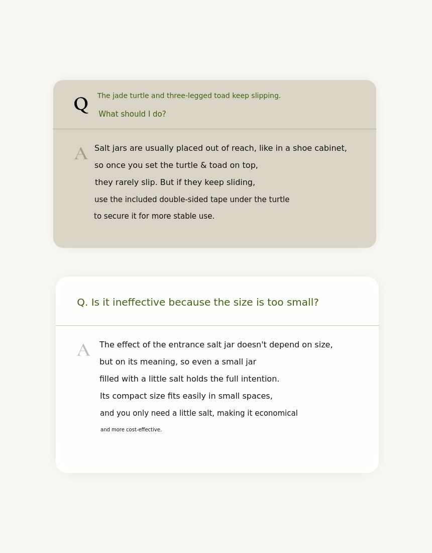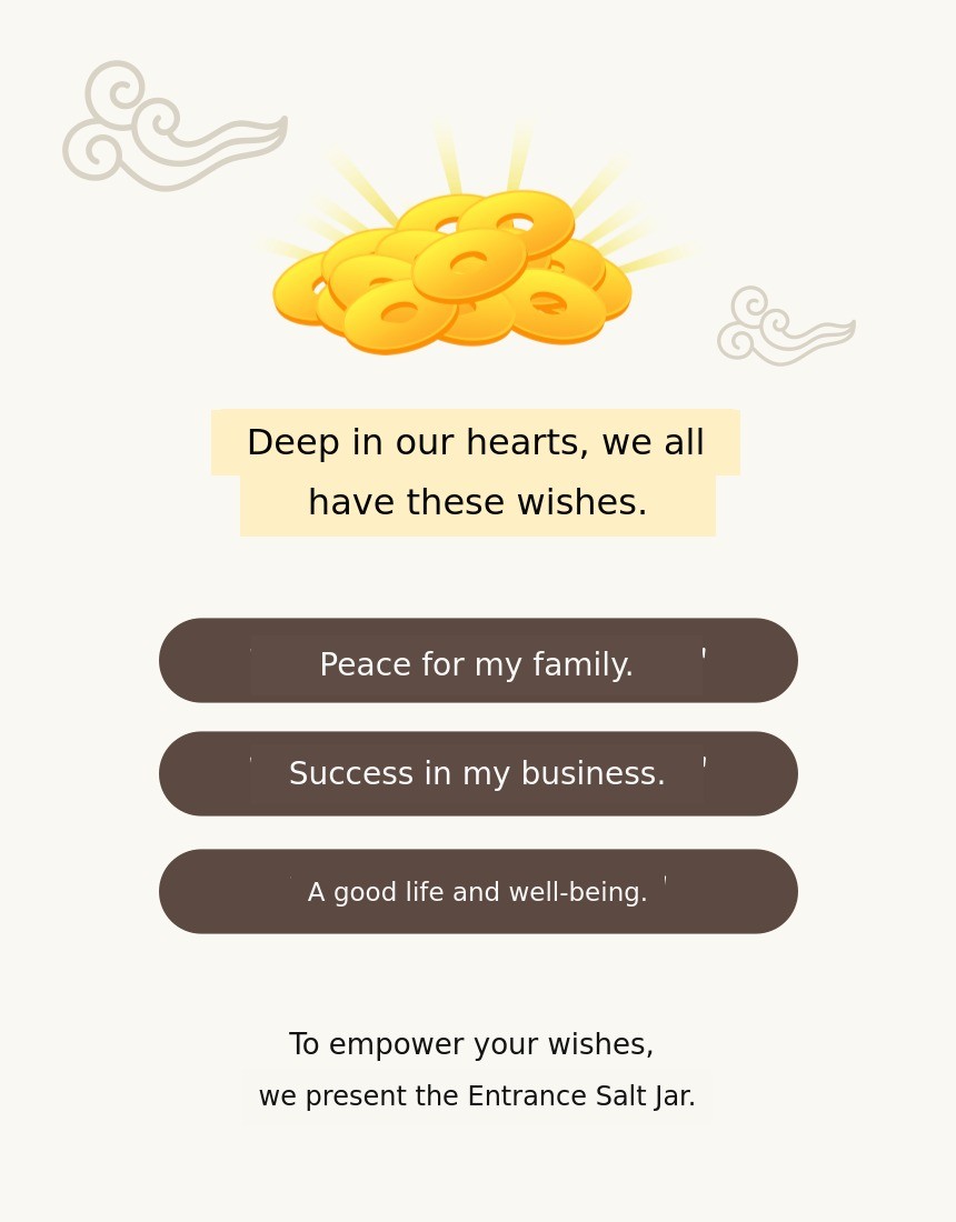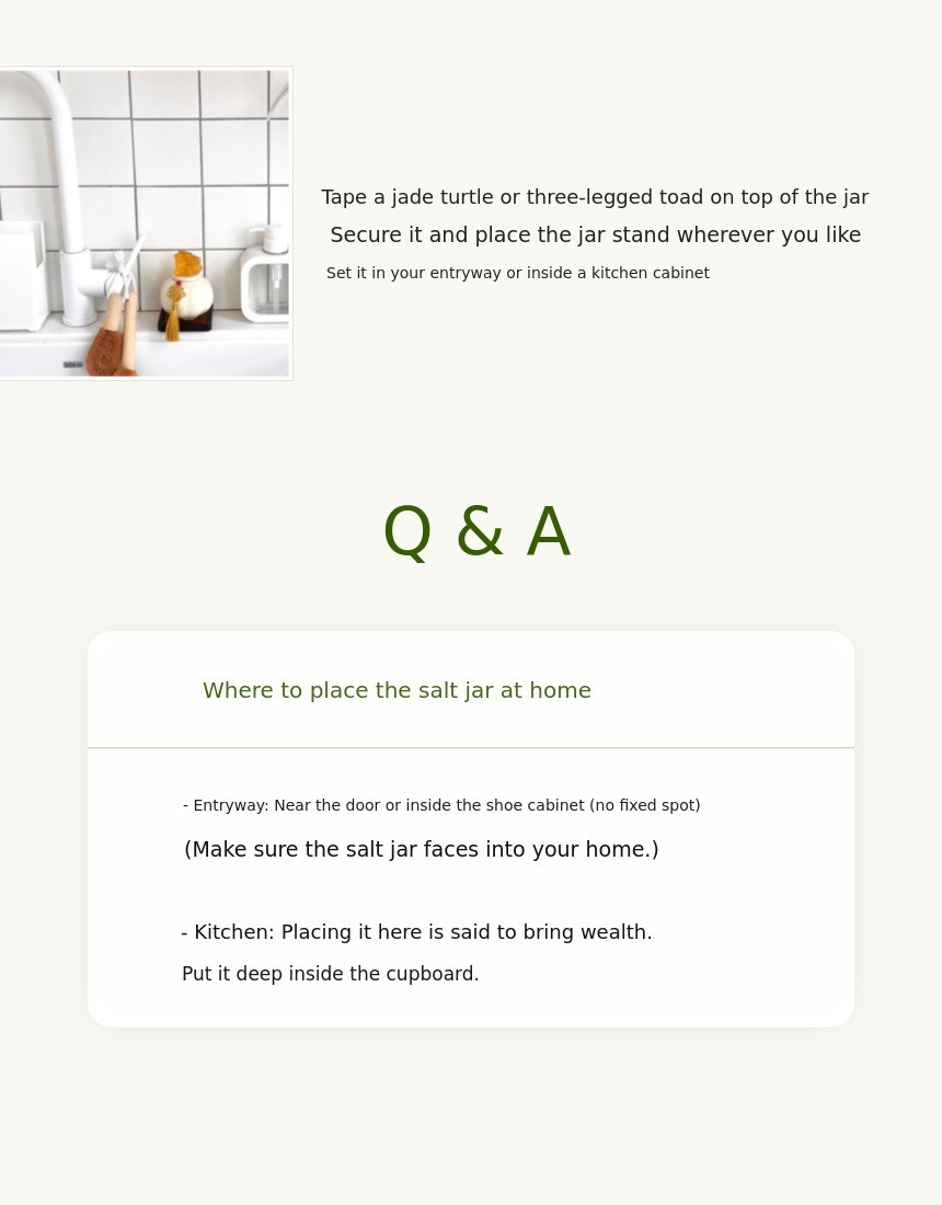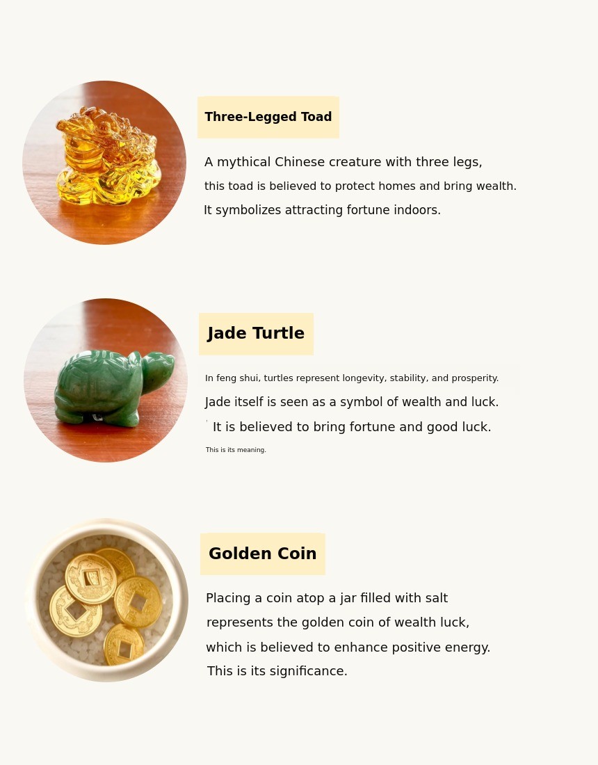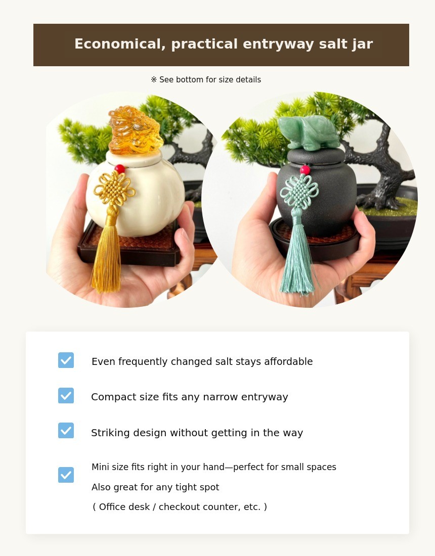 1. π Feng Shui Entrance Salt Jar - A modern-traditional interior piece symbolizing wealth and prosperity 2. π§§ 1% Wealthy Feng Shui Secret - Enhances home fortune with three-legged toad and jade turtle motifs 3. π Premium Gift Set - Includes lucky cards, mini pottery, and early bird discounts