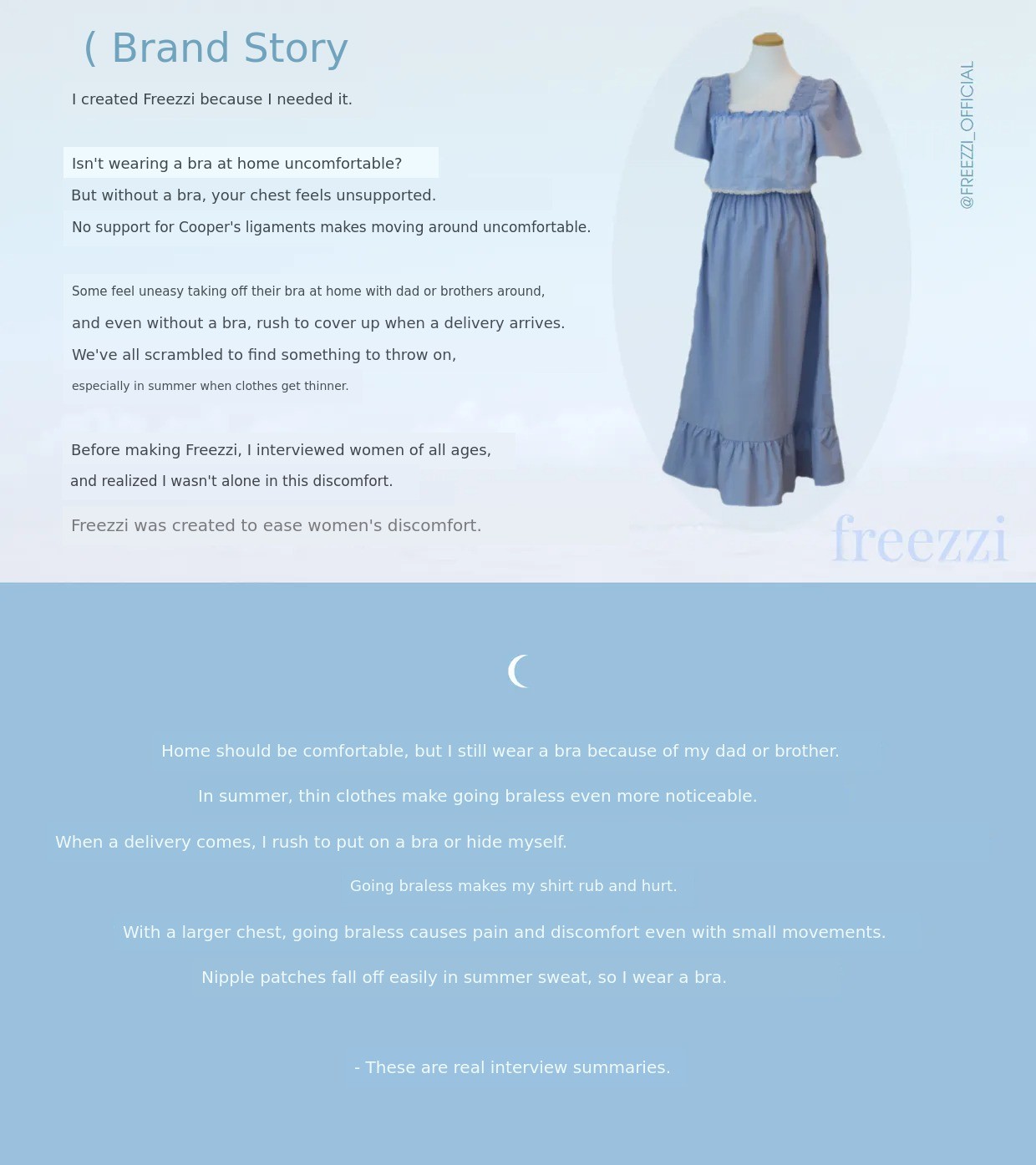 Since Freezzi is 'homewear,' the most important aspect we considered wasthe material and texture of the fabric.