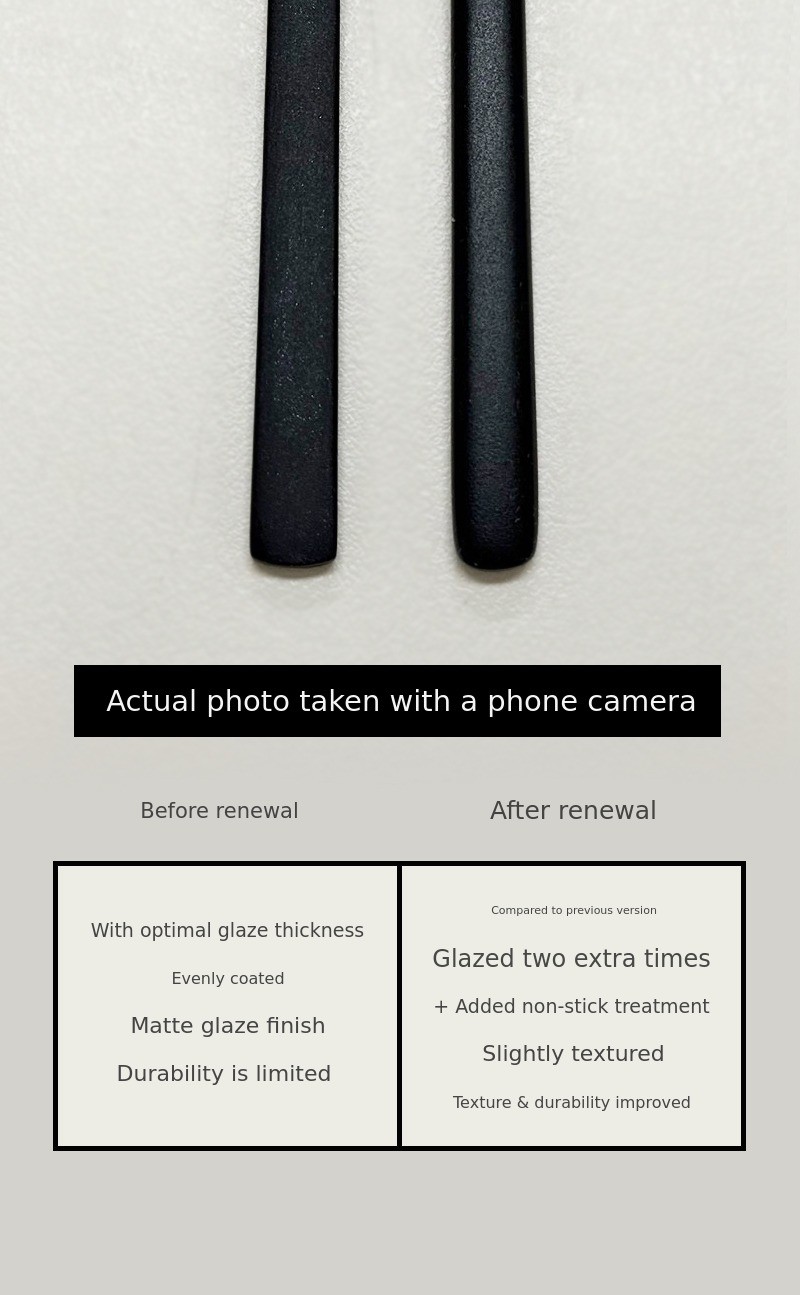 Initial 3 coatings β Renewed 5 coatings + non-stick treatment by