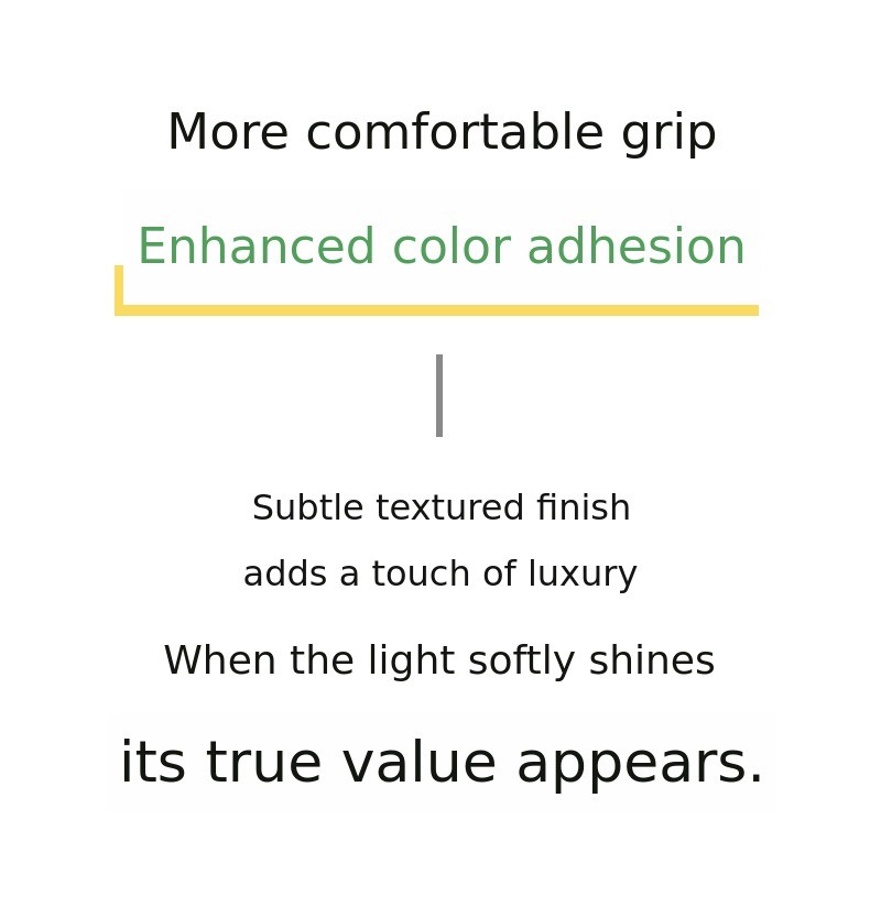The number of coatings has been increased from three to five, and a special coating treatment has been applied to strengthen surface hardness.