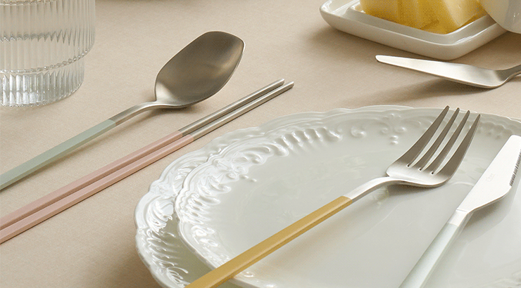 Spoon, chopsticks, dinner fork, and dinner knife are essential components for Korean, Western, and full-course dinners.