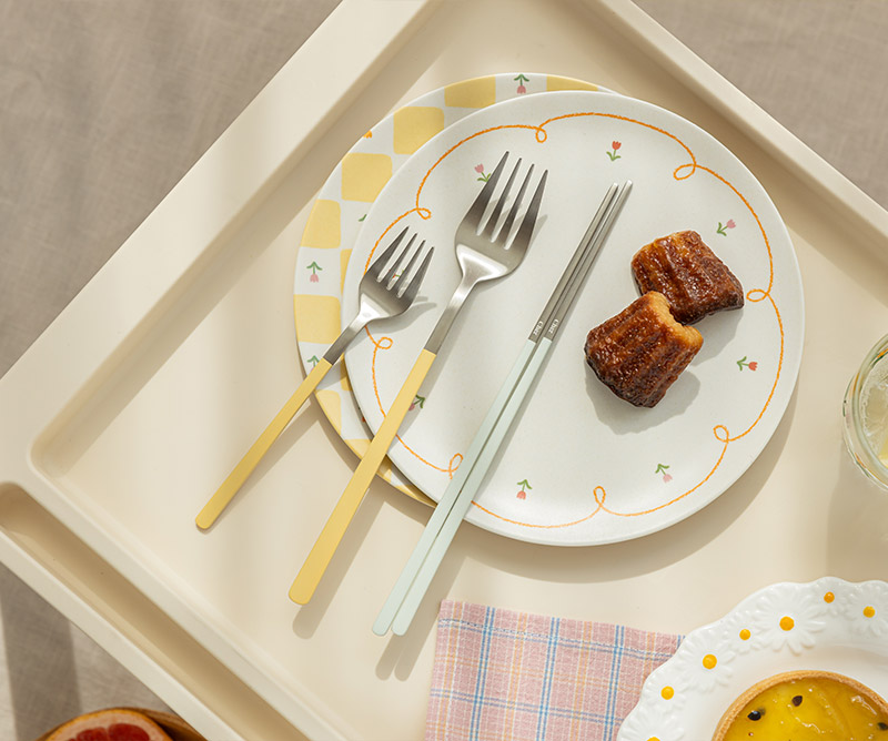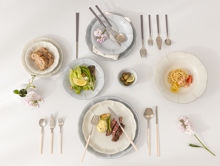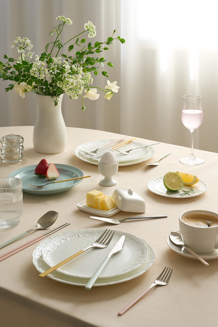 The calm and clean impression of the ivory color harmonizes well with any dish, making it the most recommended basic choice.