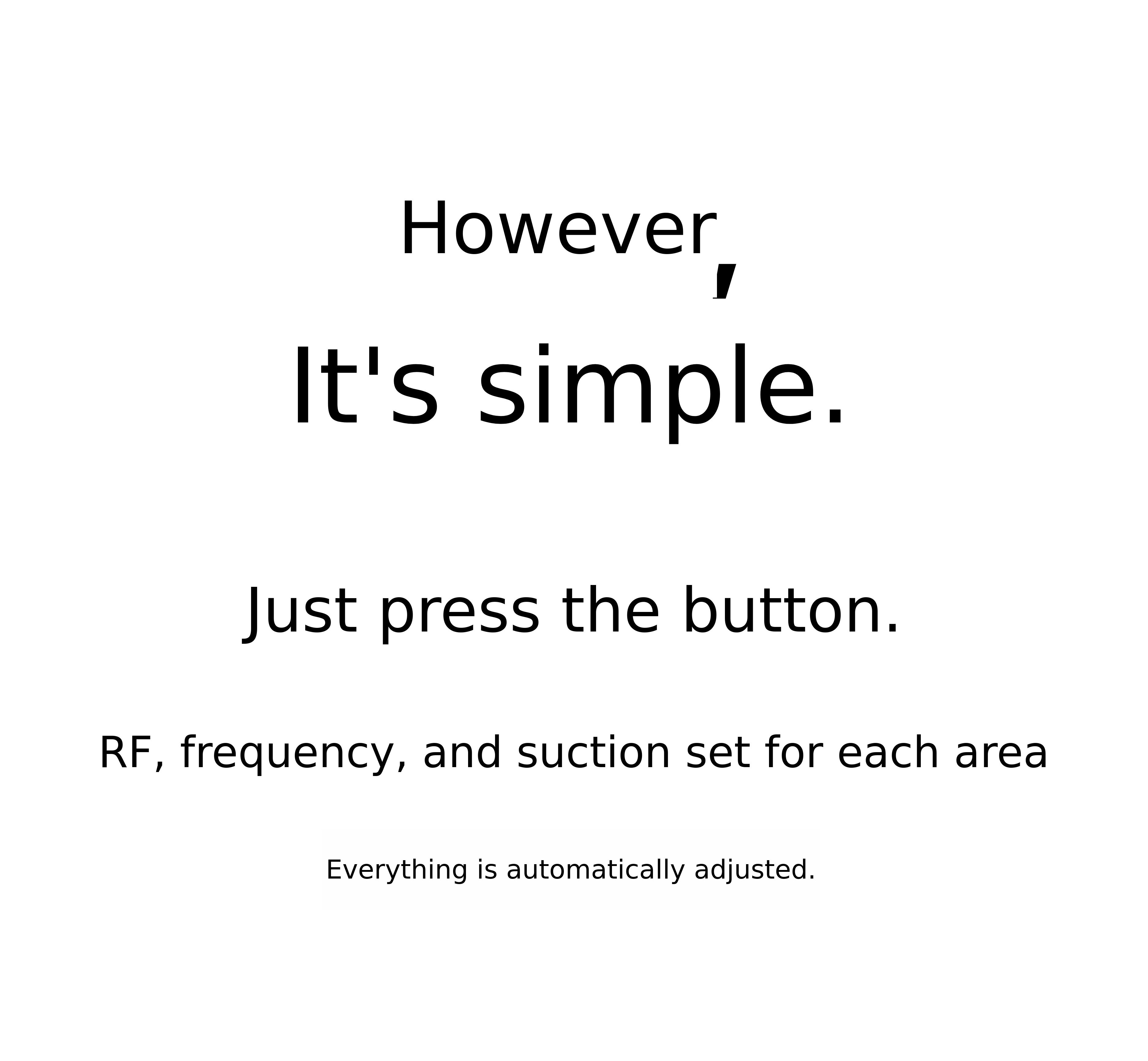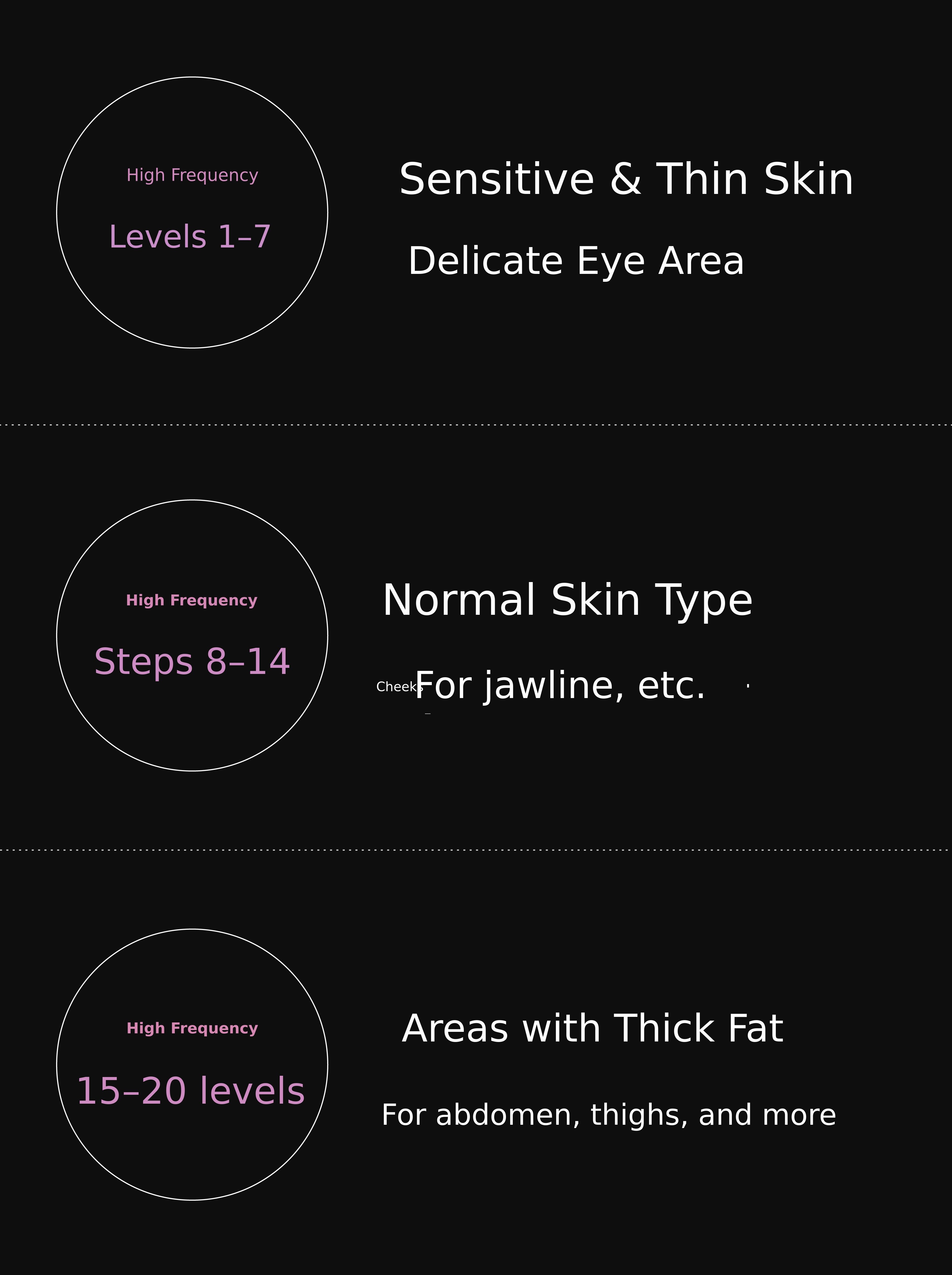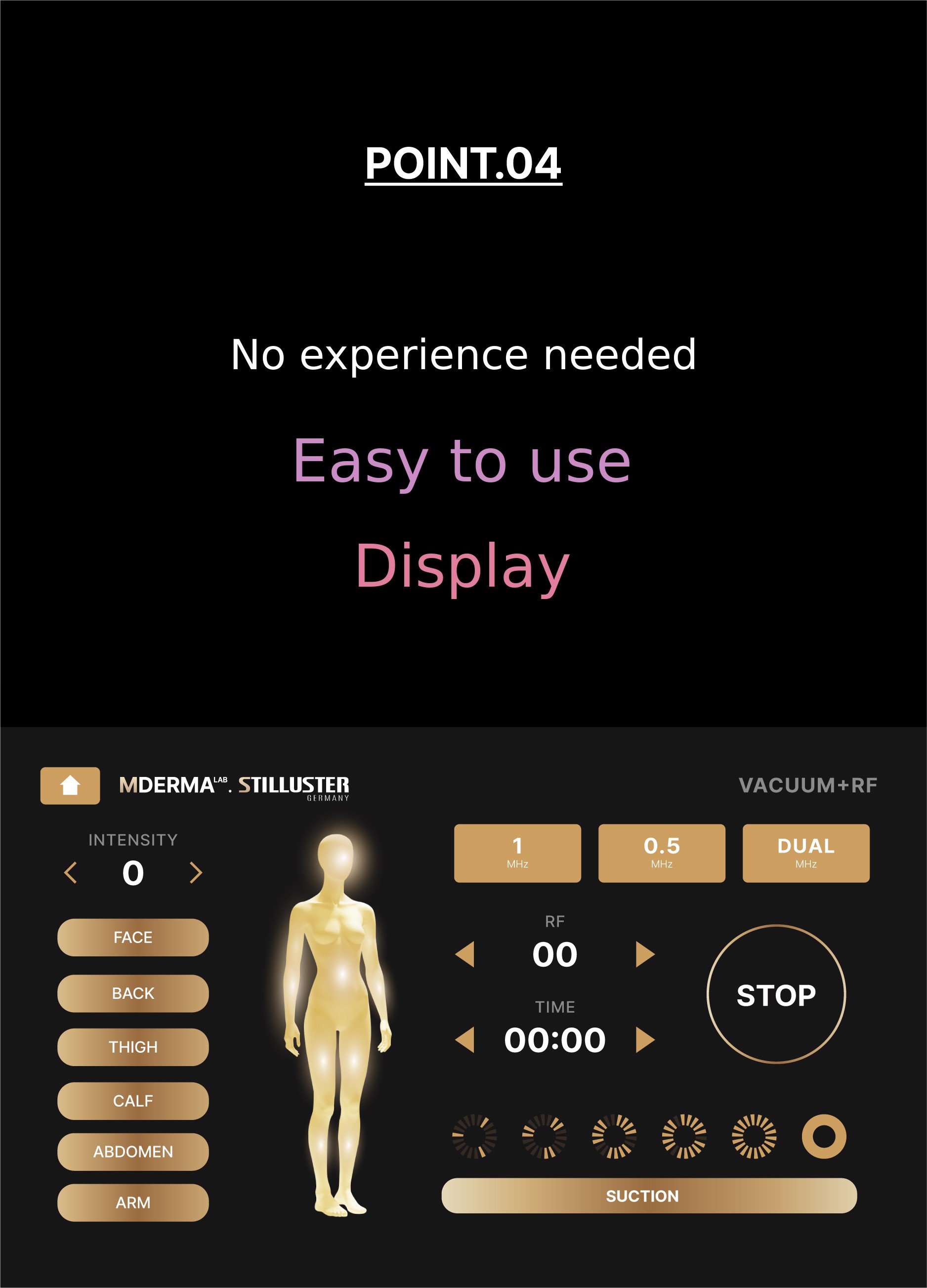 depending on each areaHigh-frequency output intensity, suction pressure, and operating frequency all can be set automatically or manually.