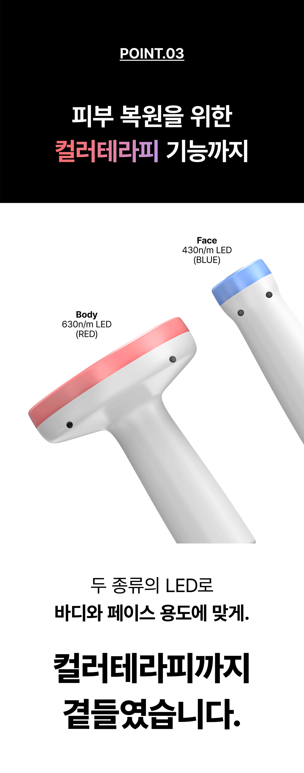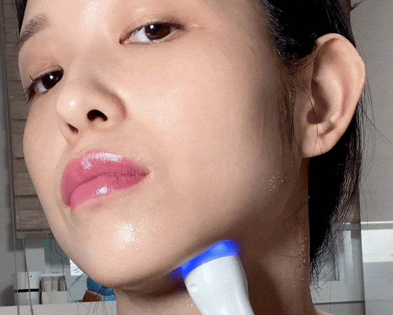 The blue LED acts on the shallow skin layer to help with antibacterial and soothing effects.