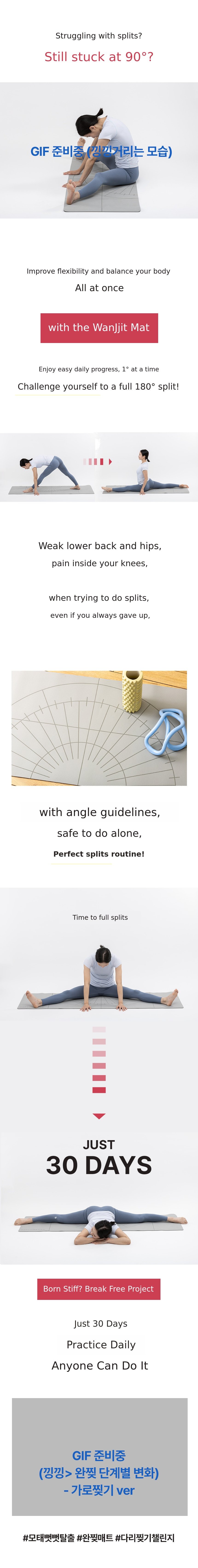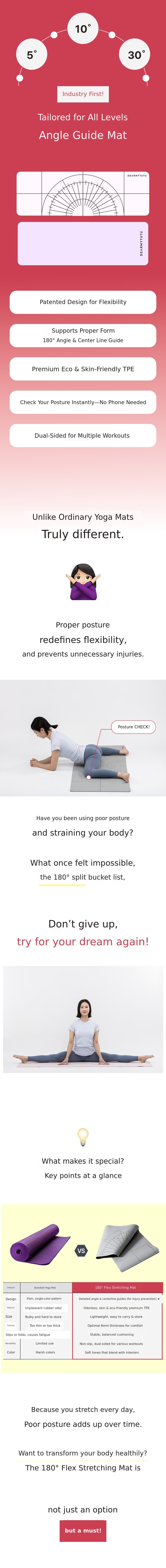 1. π§ββοΈ 180-Degree Angle Guide Mat - Detailed angle guides enable precise stretching routines 2. 𦡠Safe Leg Splits Training - Enhances flexibility with correct posture and injury prevention 3. π 30-Day Challenge Benefits - Exclusive limited offers and special discounts available
