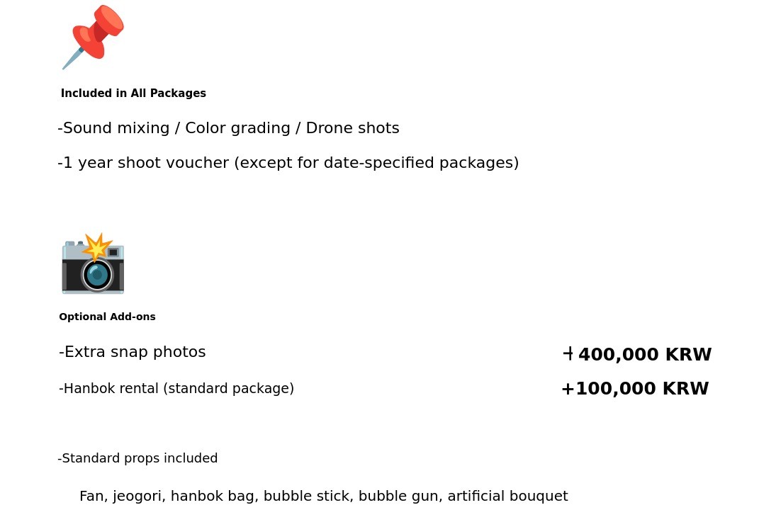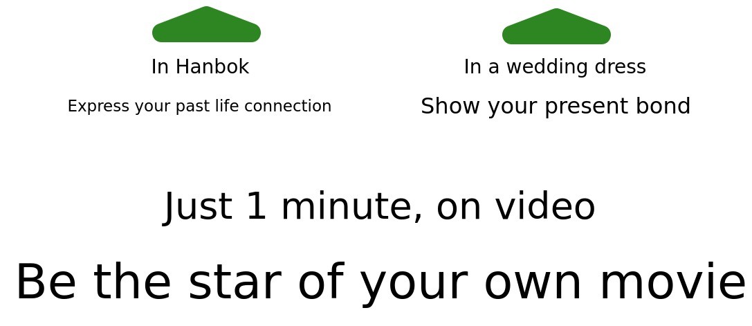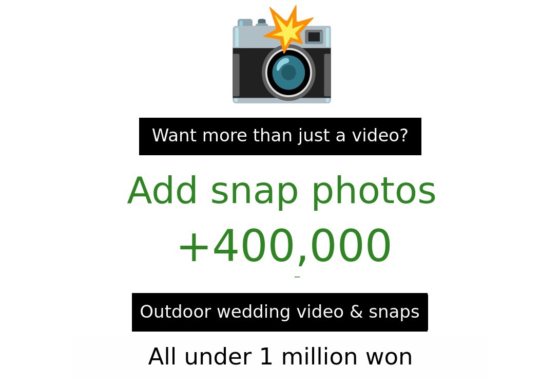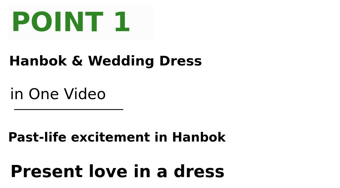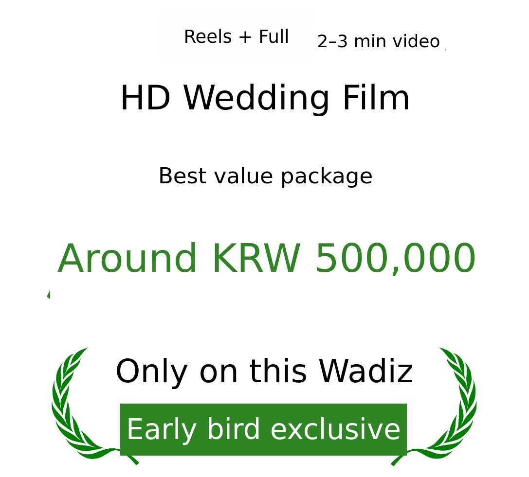 1. 🎥 Hanbok and Wedding Dress Film - Customized wedding film blending tradition and modernity 2. 🌿 Outdoor Natural Background - Emotional wedding videos shot in fields, forests, and lakes 3. 🎁 Early Bird Special Offer - Affordable pricing with exclusive discounts for supporters