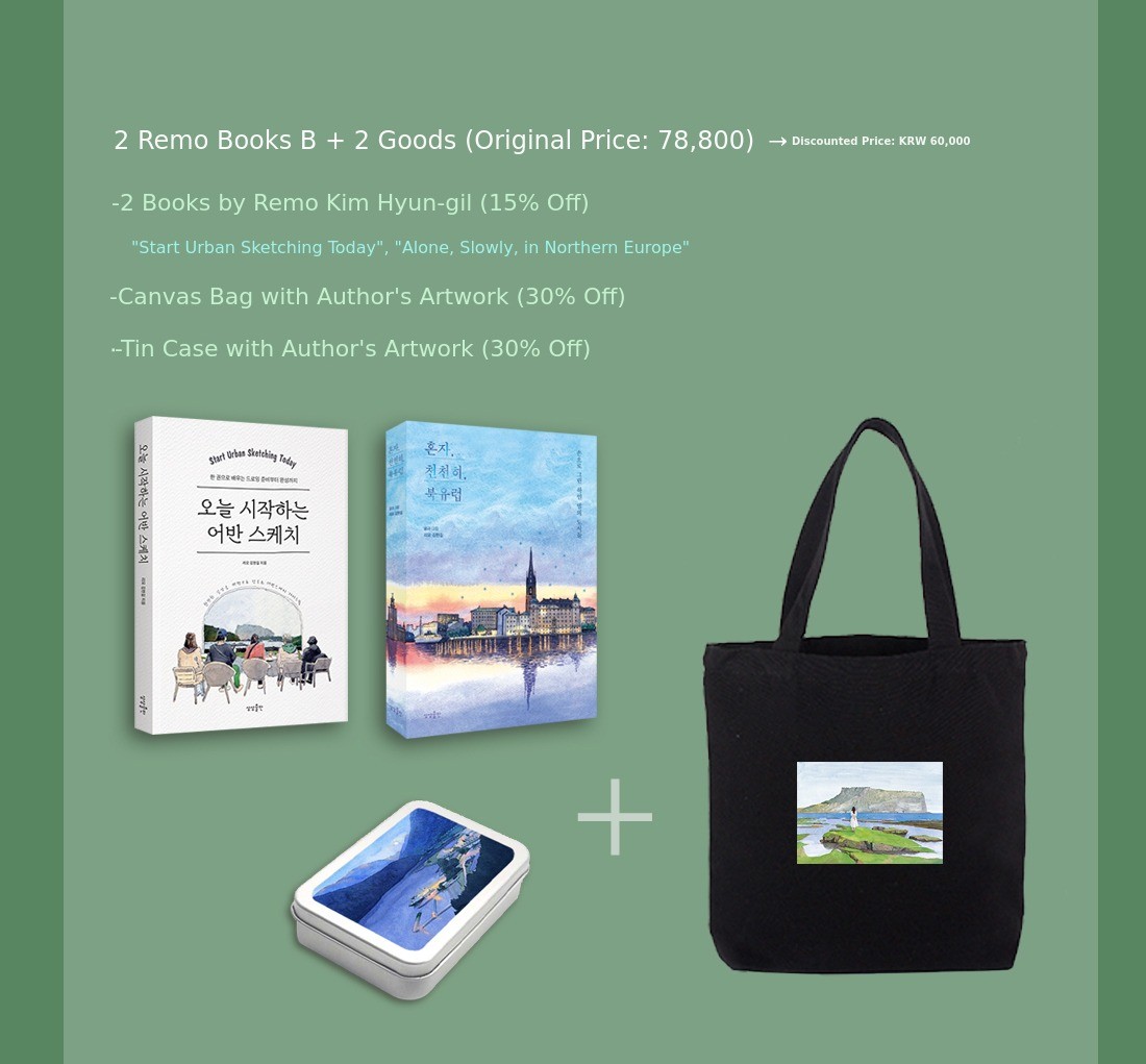 1. 🎨 Urban Sketch Drawing Package - Start easily with Rimo Kim Hyun-gil's emotional drawing and beginner's guide 2. 🖌️ Emotional Urban Landscape Art - Delicate watercolor and pen drawings capturing daily and travel scenes 3. 🎁 Exclusive Goods and Online Class - Includes artist's eco bag, tin case, and one-day online sketching class