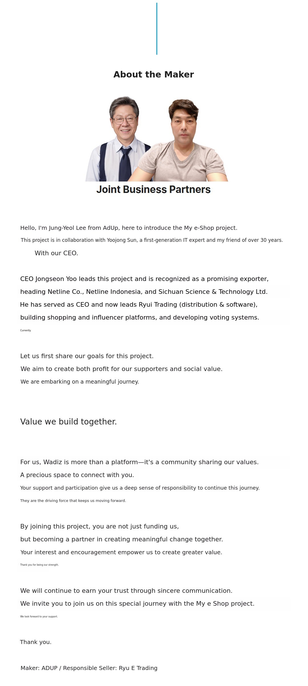Purpose of My eShop project's Wadiz funding