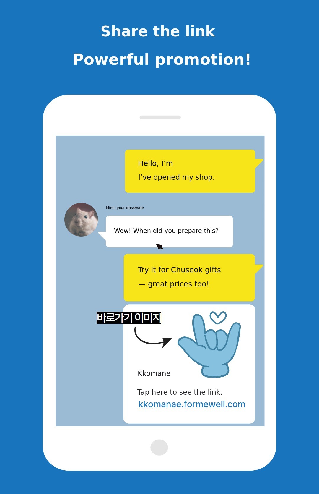 - Share your MyShop link in group chats, on social media, and more in a fun way.