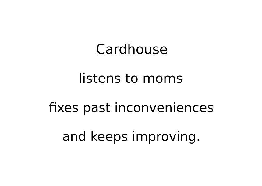 Thanks to your guidance, Cardhouse will always strive to meet your expectations.