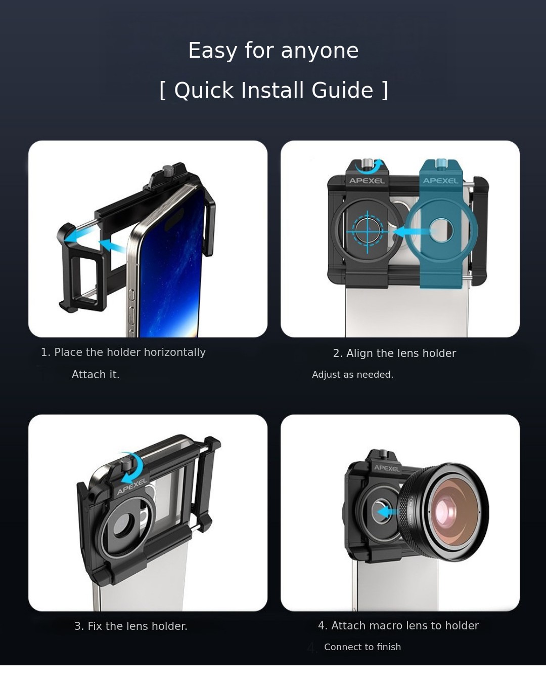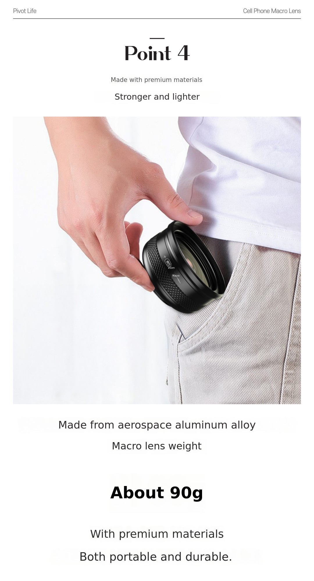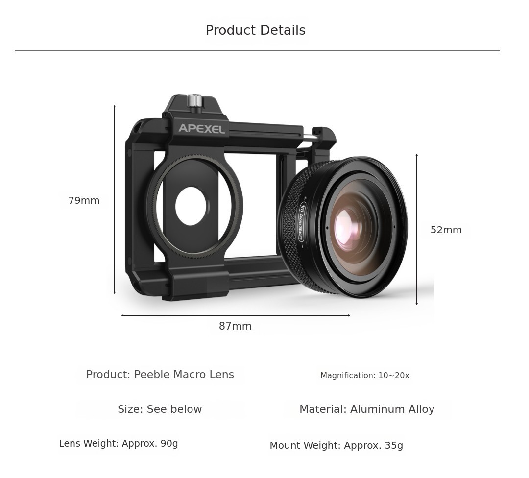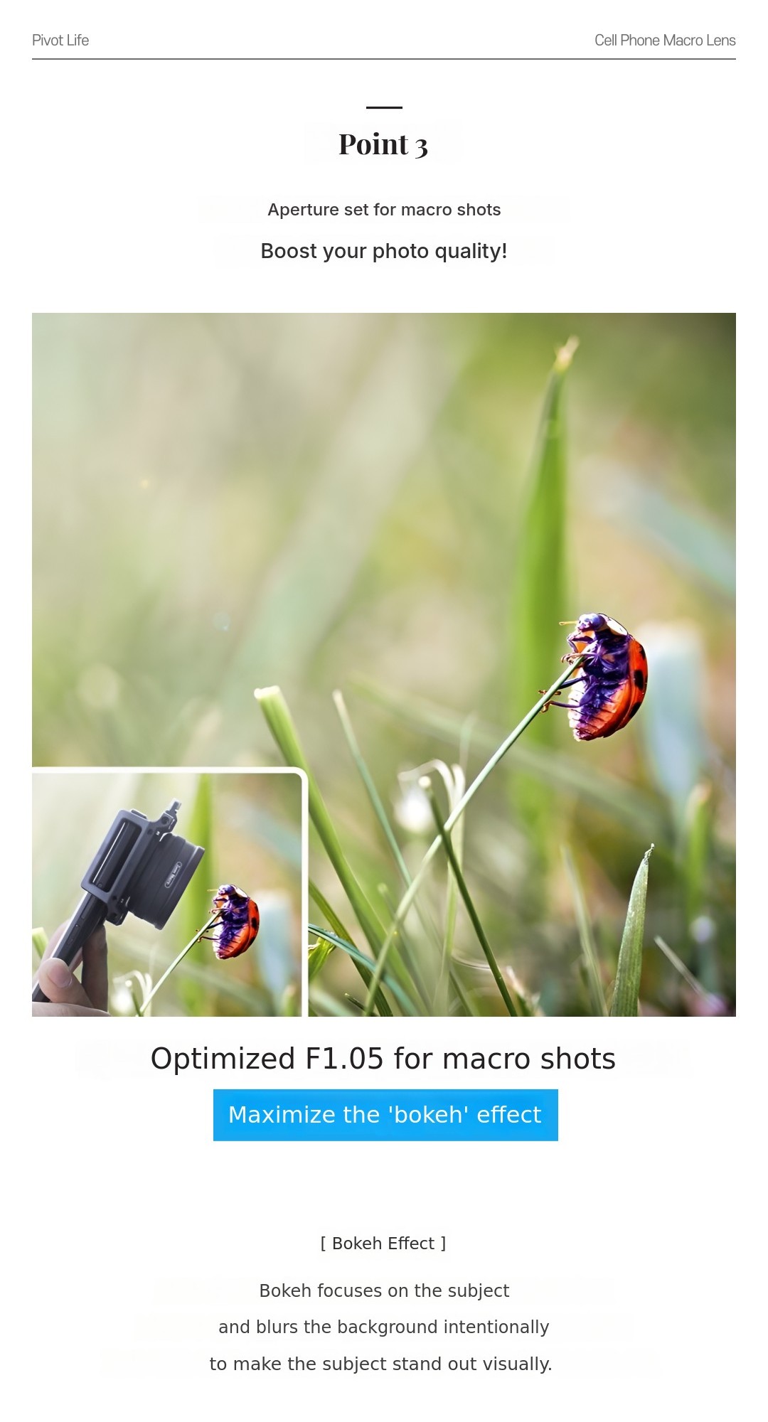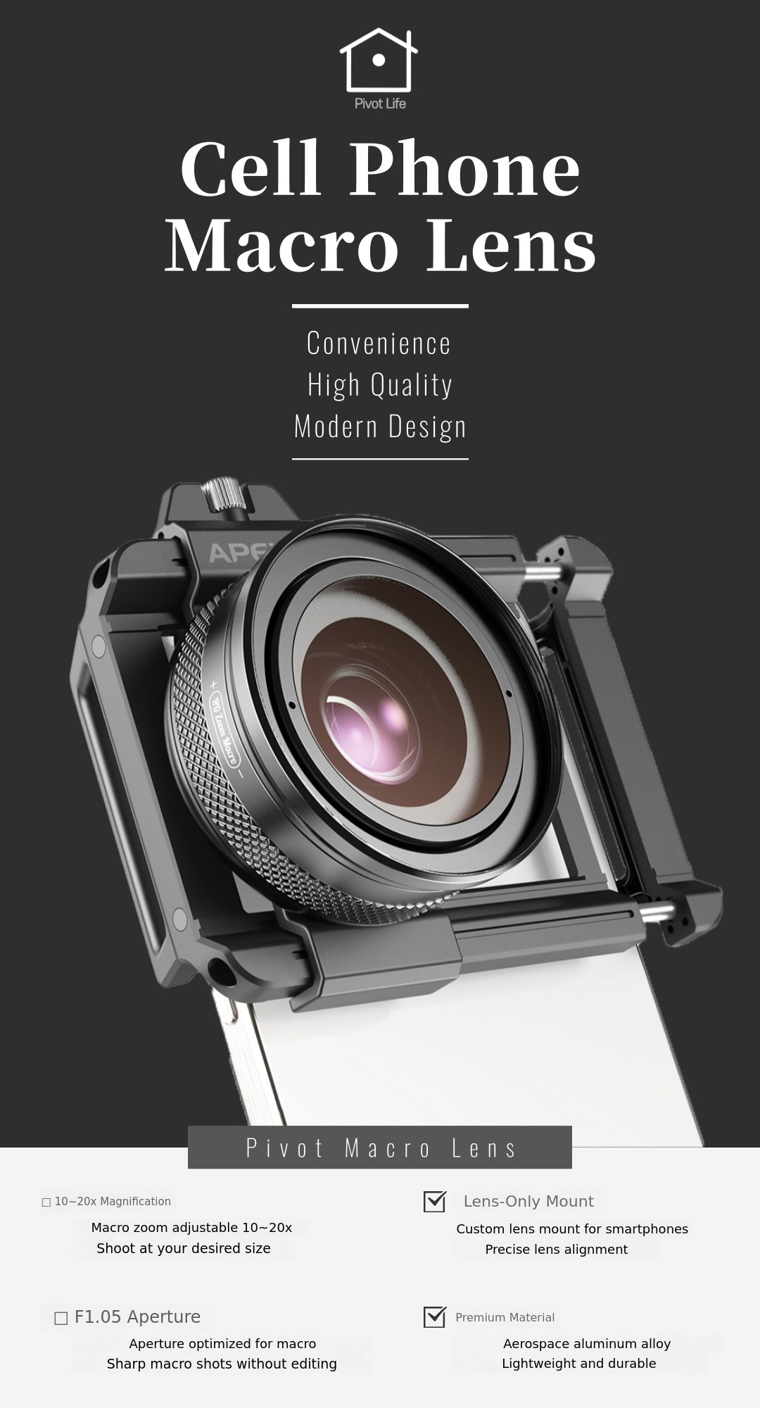 1. 📱 Smartphone Macro Lens - High-quality macro lens with 10-20x adjustable zoom 2. 🔍 Detailed Close-up Shooting - F1.05 aperture enables bright and sharp macro photos 3. 🎁 Exclusive Crowdfunding Offer - Special discounts on single and double set purchases