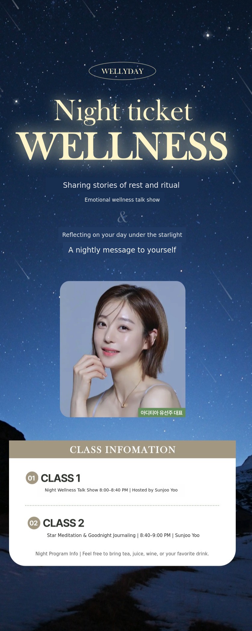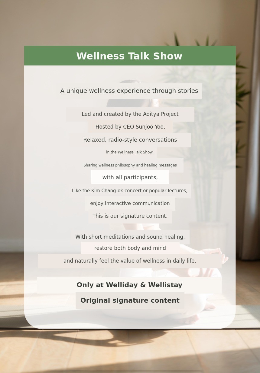 "Hello. I am Yuseonju, who plans and operates Aditia Welliday & Wellistay."