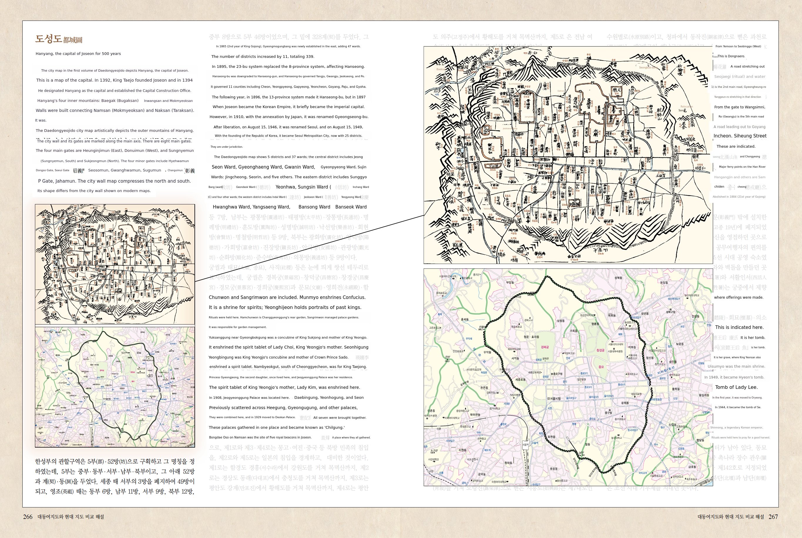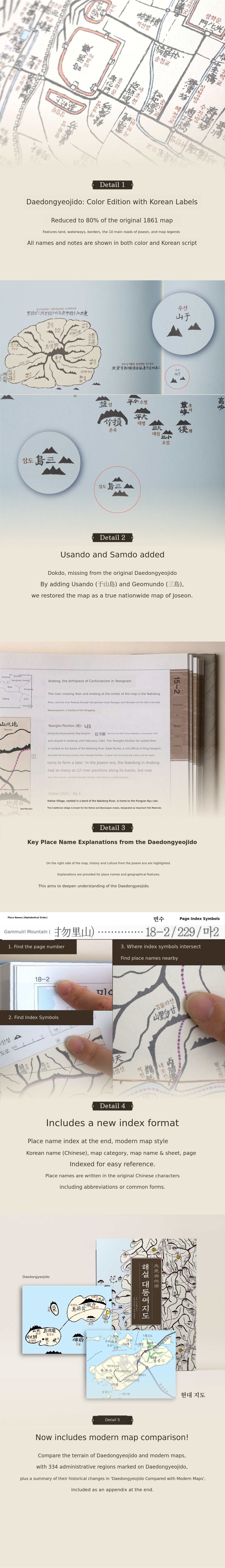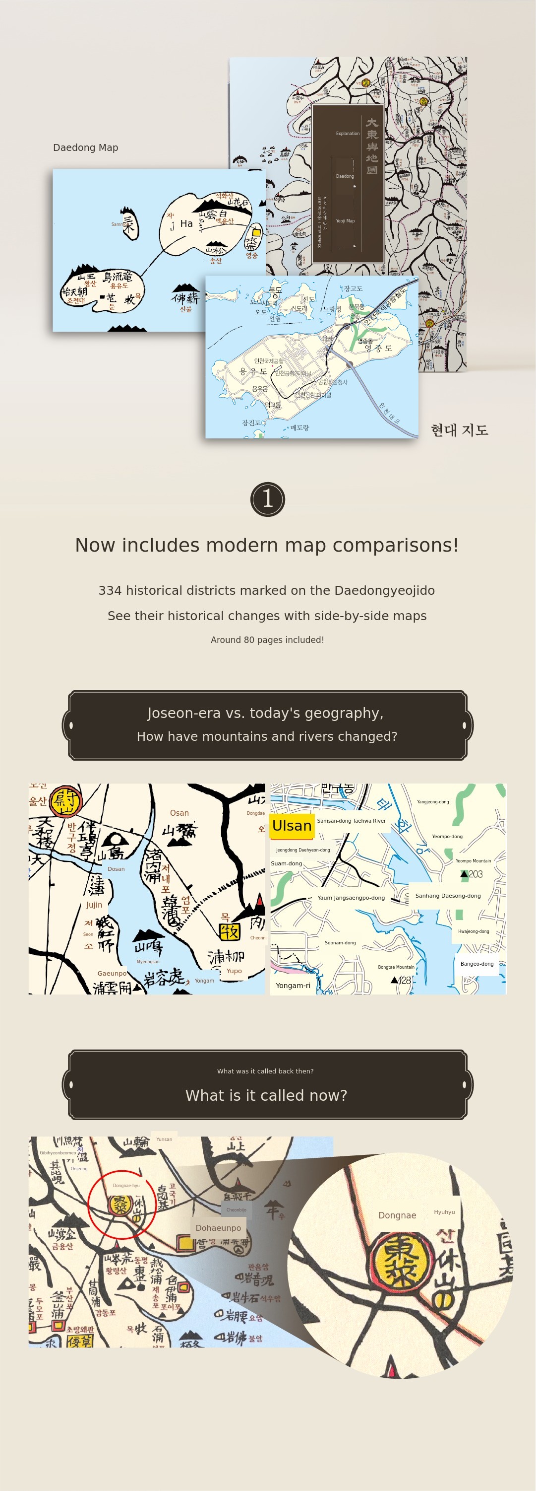 Additionally, about 80 pages of comparative Daedongyeojido manuscripts comparing with modern maps have been added have been included.