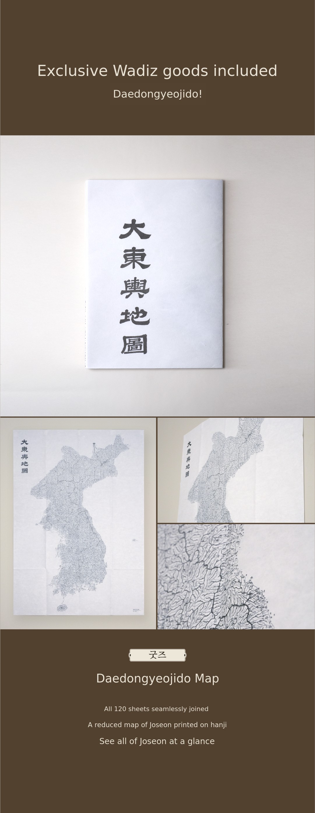 Exclusive 'Daedongyeojido Map' goods available only through this funding! This is a unique opportunity to encounter the greatest map of Joseon, Daedongyeojido, in your daily life. Experience the 'Daedongyeojido Map,' created by connecting all 120 sheets of the Daedongyeojido, reducing them, and printing them on hanji paper.
