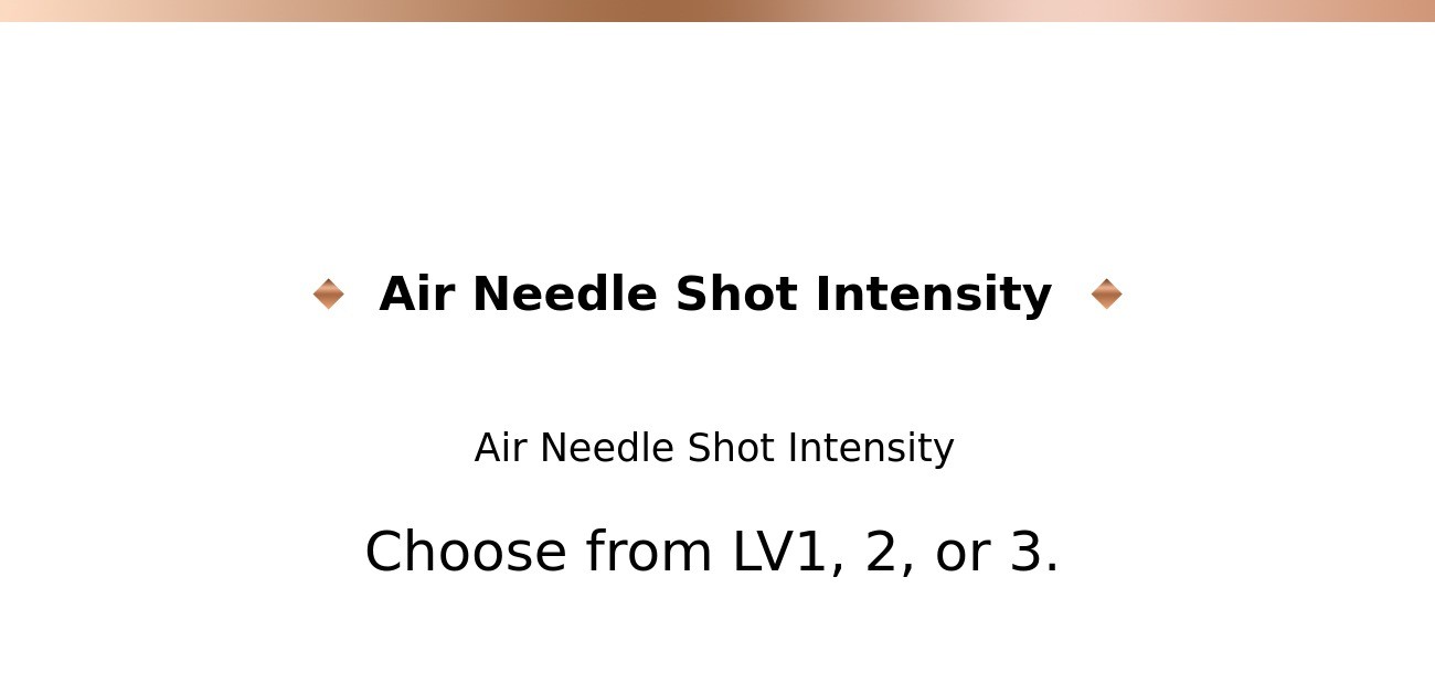 : In the case of the Air Needle Shot, a slight tingling and vibration may be felt as micro-holes are created in the skin by electrical pulses. Please start by selecting the lowest intensity level.