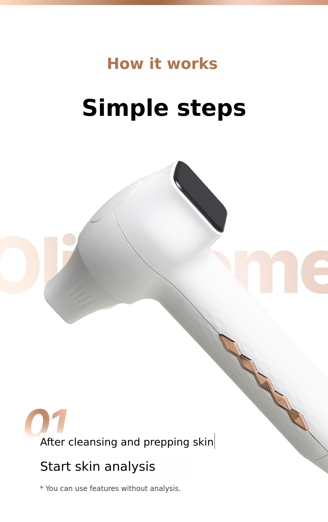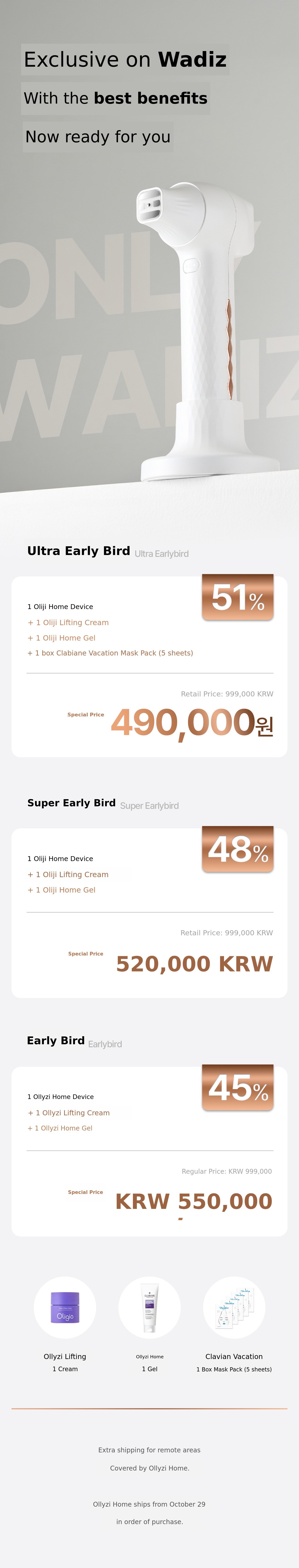 : Olizy Home delivers the best results when used with the exclusive gel. However, it is also safe to use with any gel or ampoule that provides sufficient moisture.