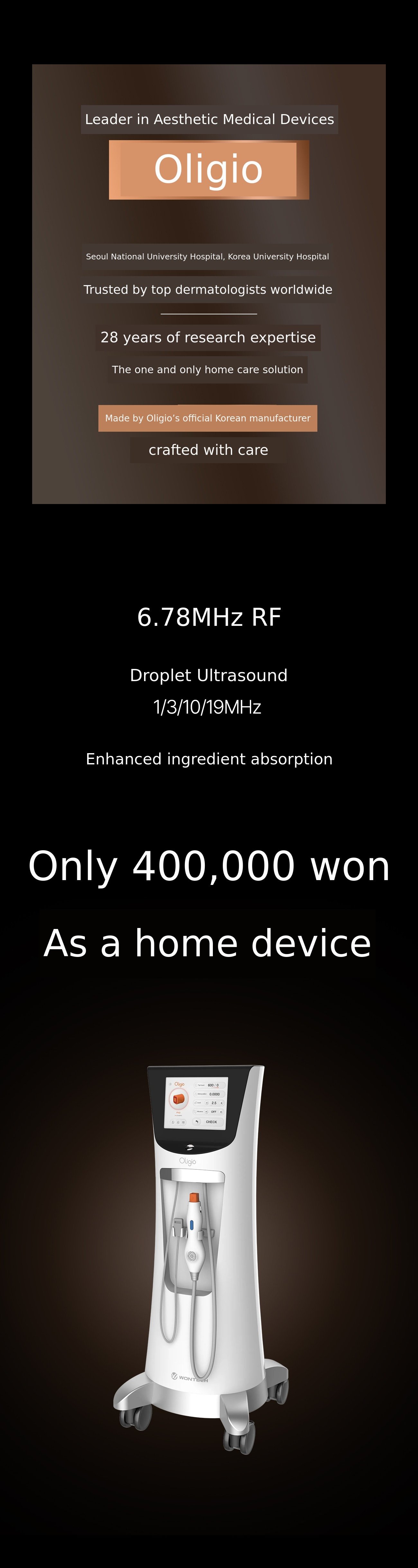I took my first step into the skin beauty industry in 2004 at Wontech, a company that gained global recognition with Olizgio. At that time, IPL and CO2 lasers were the main treatments in dermatology clinics. Since then, numerous hit devices such as laser toning, Su*rgi, Fra*xel, Ulth*ra, and LD* have appeared on the market. I have grown together with Wontech, experiencing the entire process from market research and device development to clinical studies and supplying equipment to professional institutions.