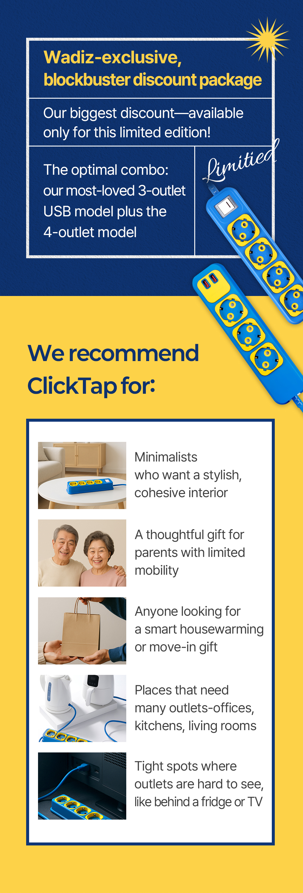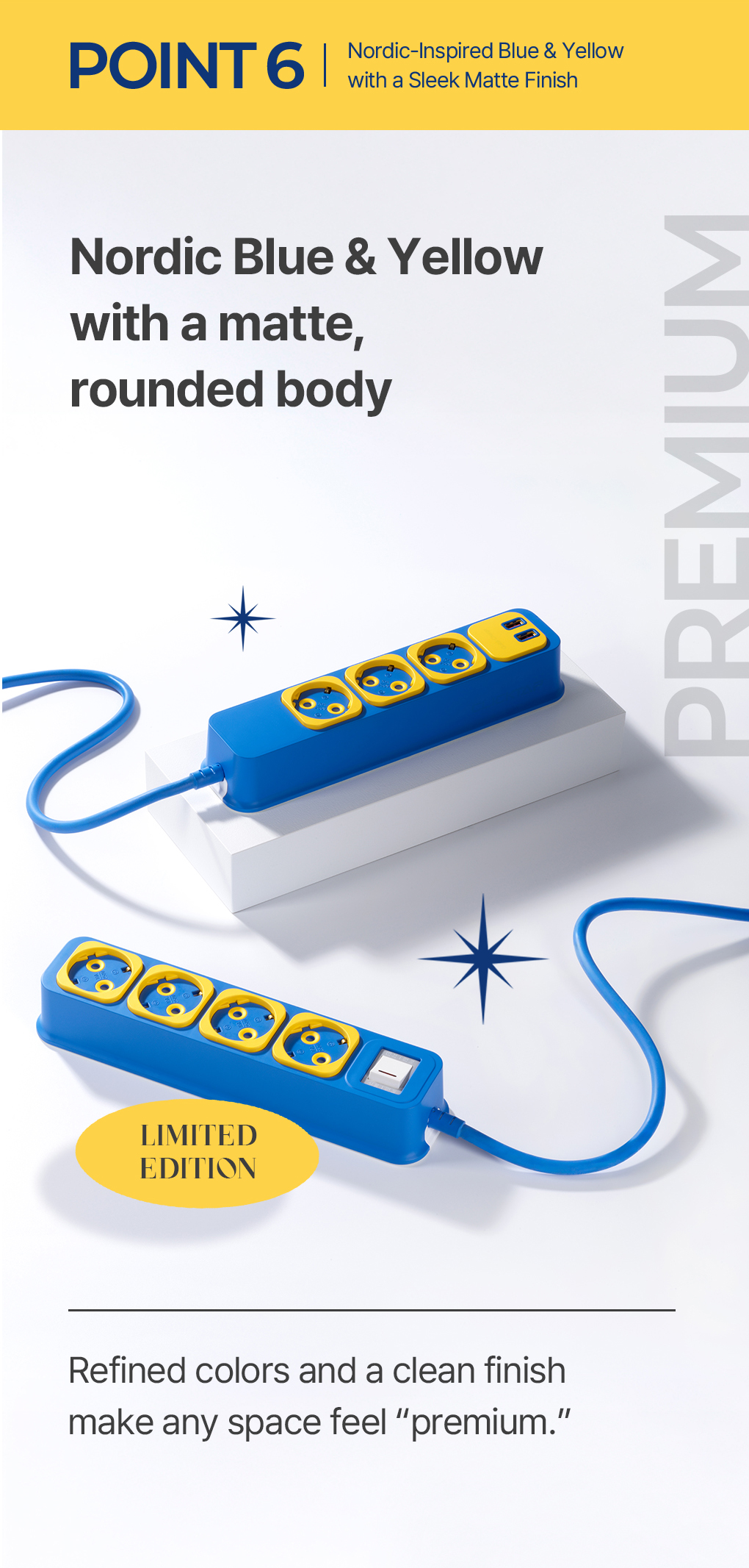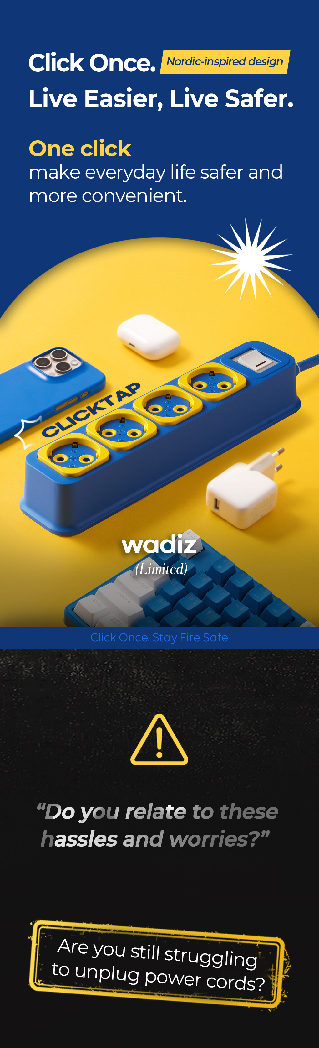 1. π Premium Emotional Power Strip - Easily unplug cords with a single click 2. π₯ Dual Fire Safety Design - Fire risk minimized with built-in fire suppression patch 3. π Exclusive Crowdfunding Discount - 34% off and limited Blue & Yellow edition available