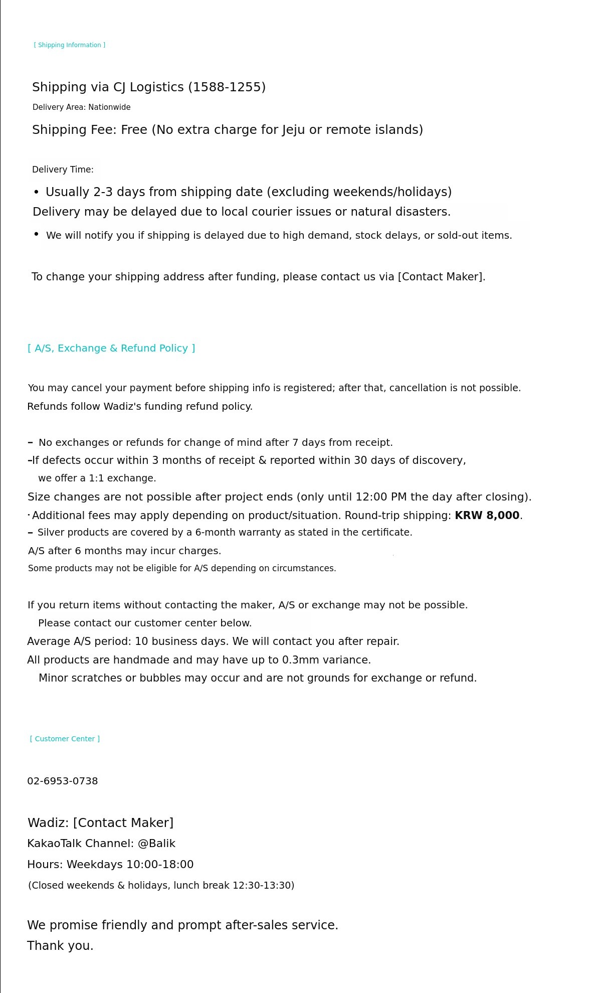 If you have any other questions, please contact us through [Contact Maker] and we will respond quickly :)