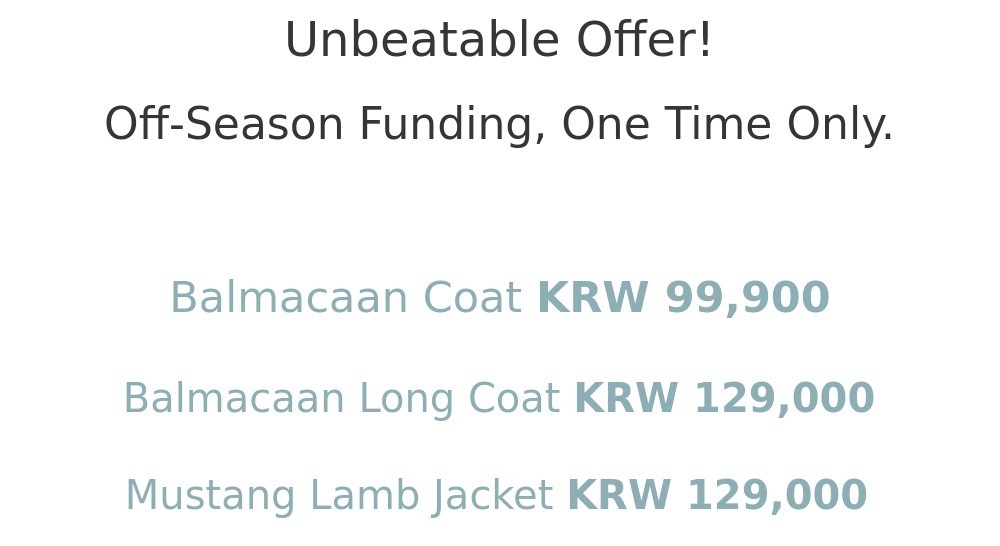 *For off-season funding, long coat black color is excluded.