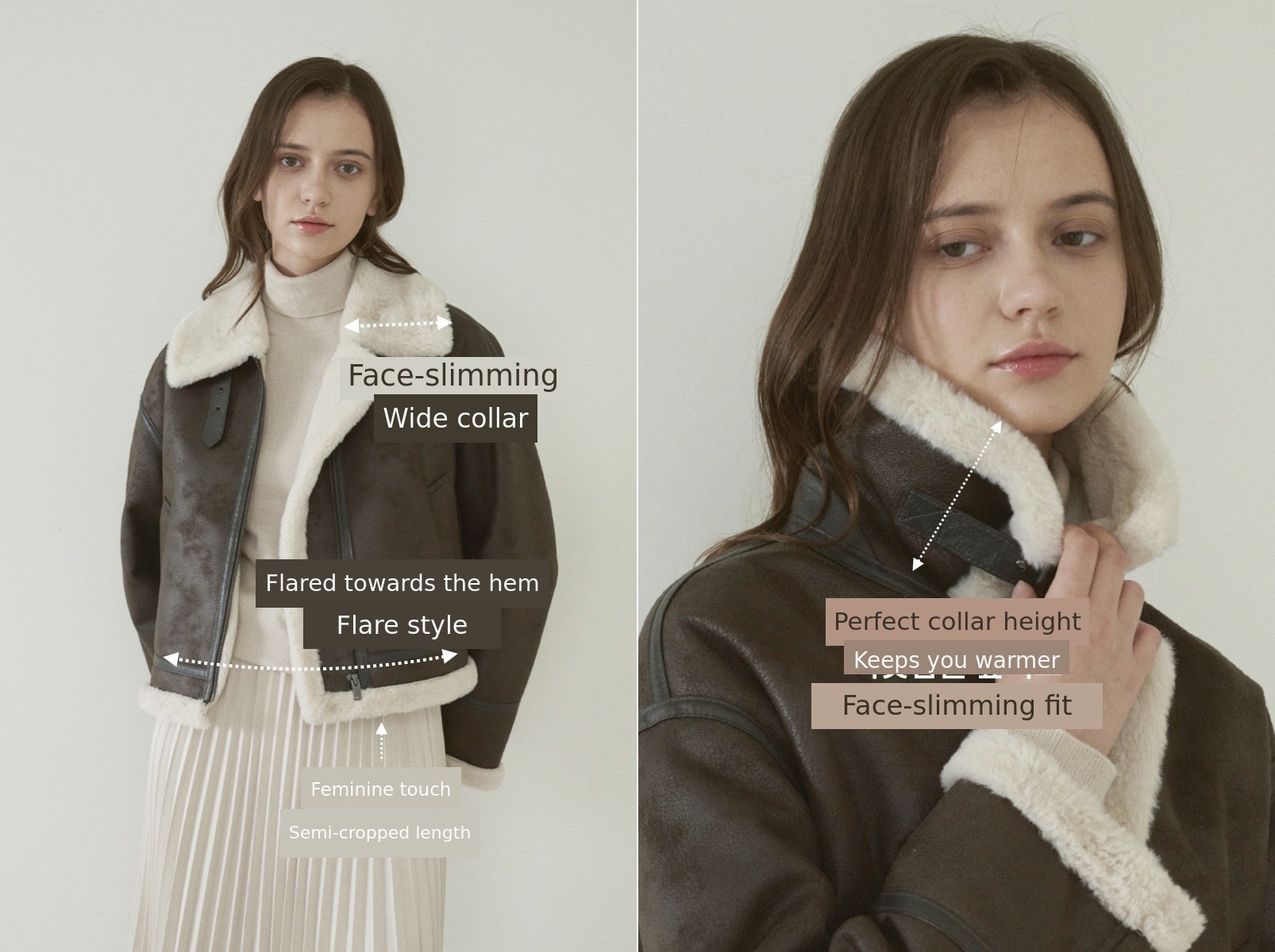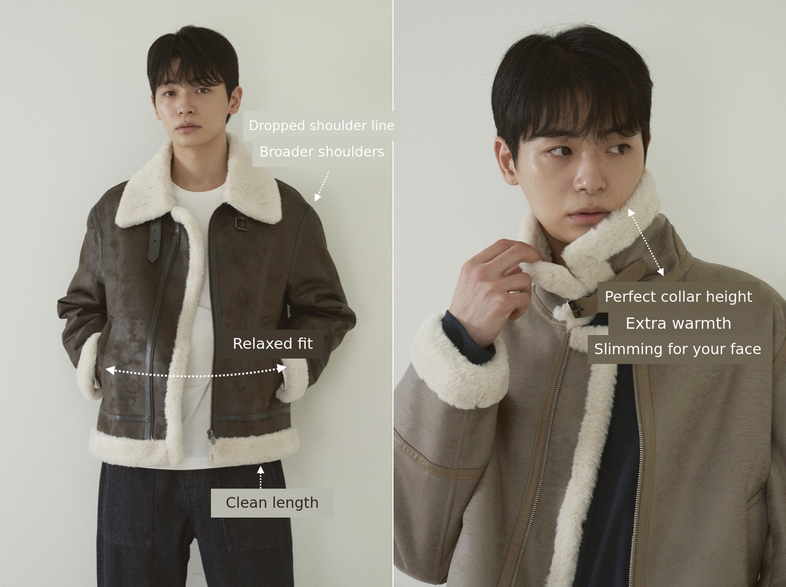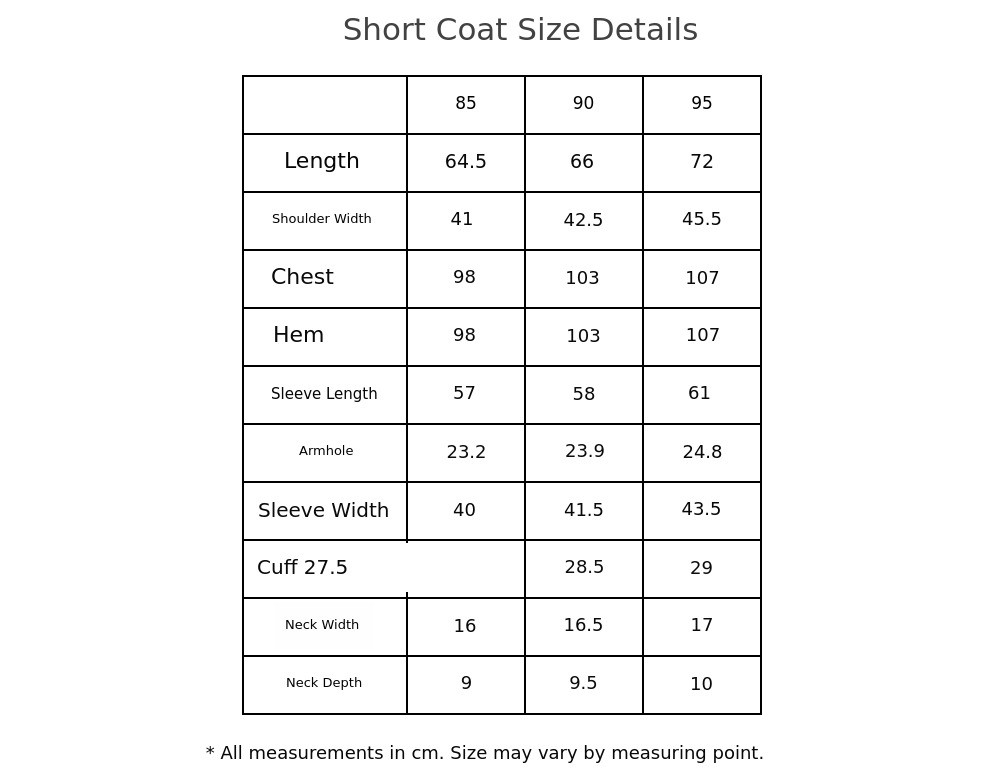 Considering the lengths of the short and long coats, the pocket on the short coat is designed to be slightly shallower than that of the long coat.