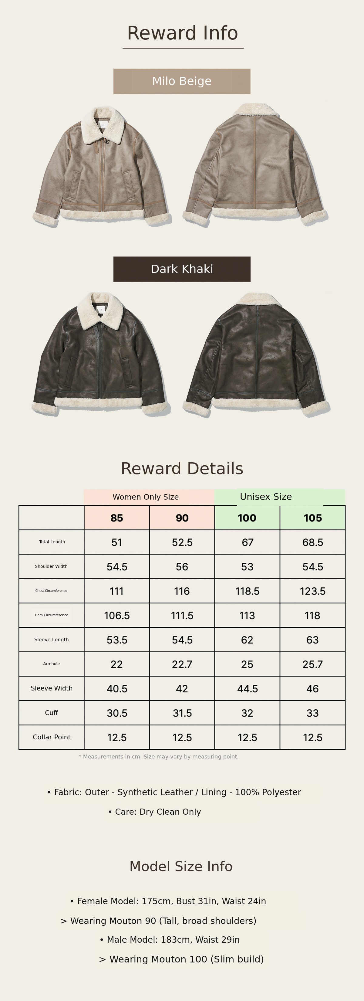 - Male model: Wearing size 105 - Height 186cm, Chest 95cm