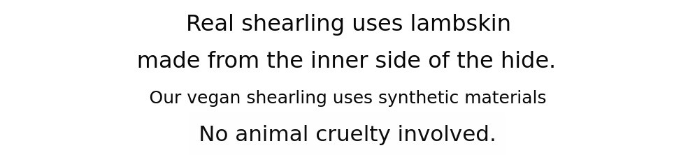 We do not engage in slaughter or abuse to make our clothes,