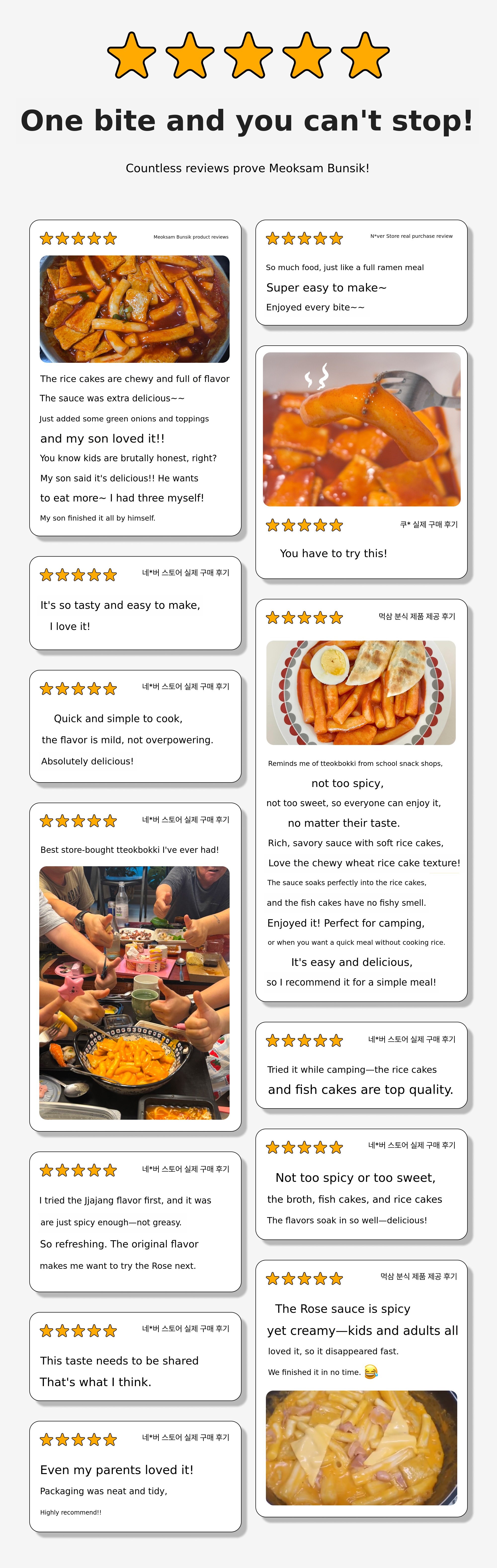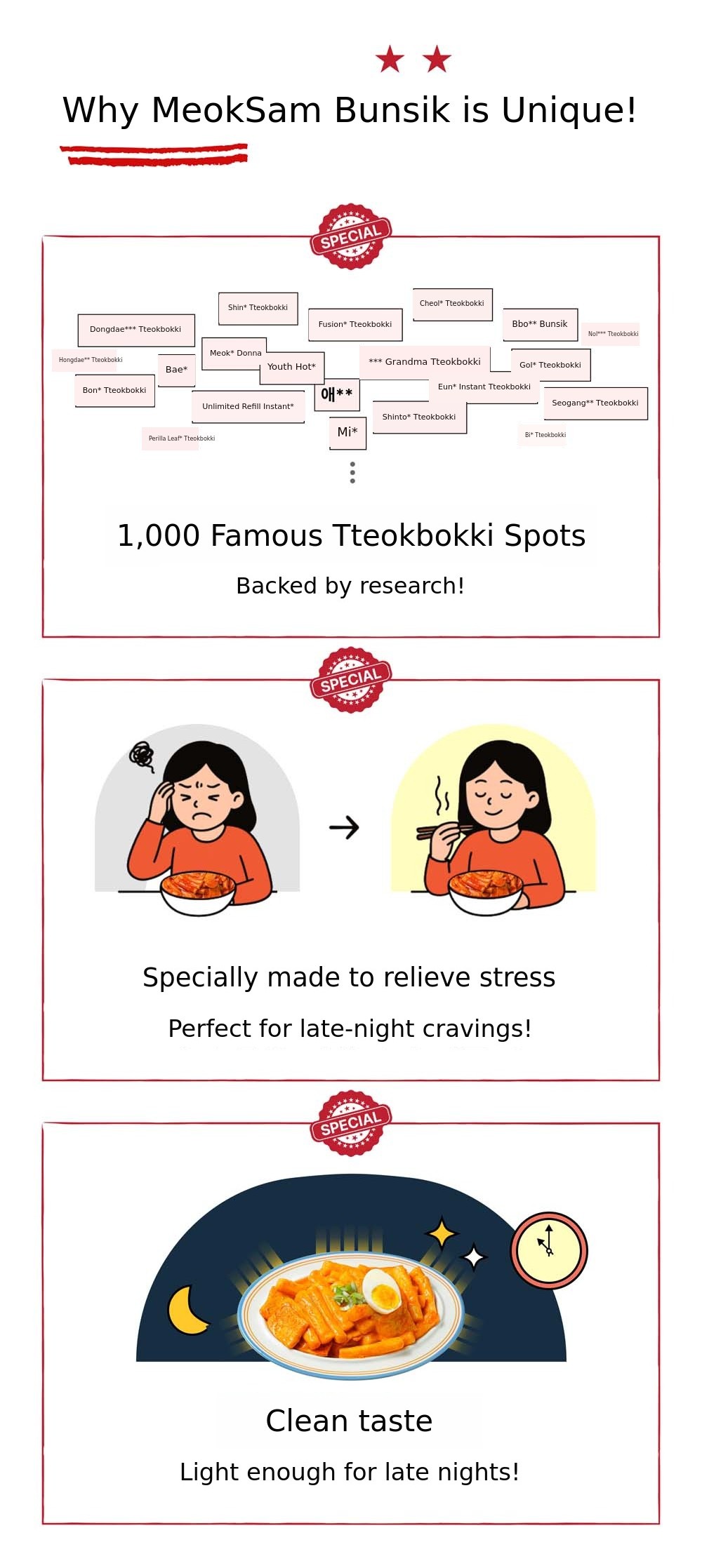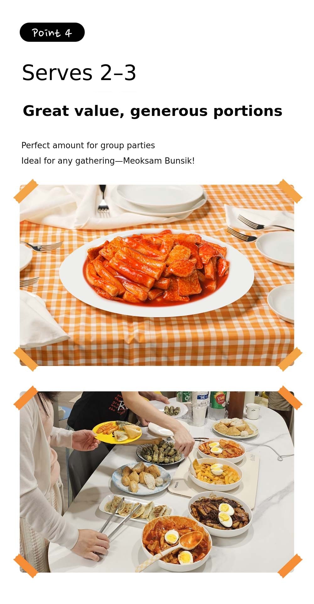 1. 🍲 7-minute Night Snack Tteokbokki - Chewy, spicy, and sweet flavors ready in just 7 minutes 2. 🌙 Authentic Nostalgic Snack Taste - Recreates the classic schoolyard snack shop tteokbokki flavor 3. 🎁 Limited Early Bird Discount Set - Up to 48% off with exclusive goods included in limited sets