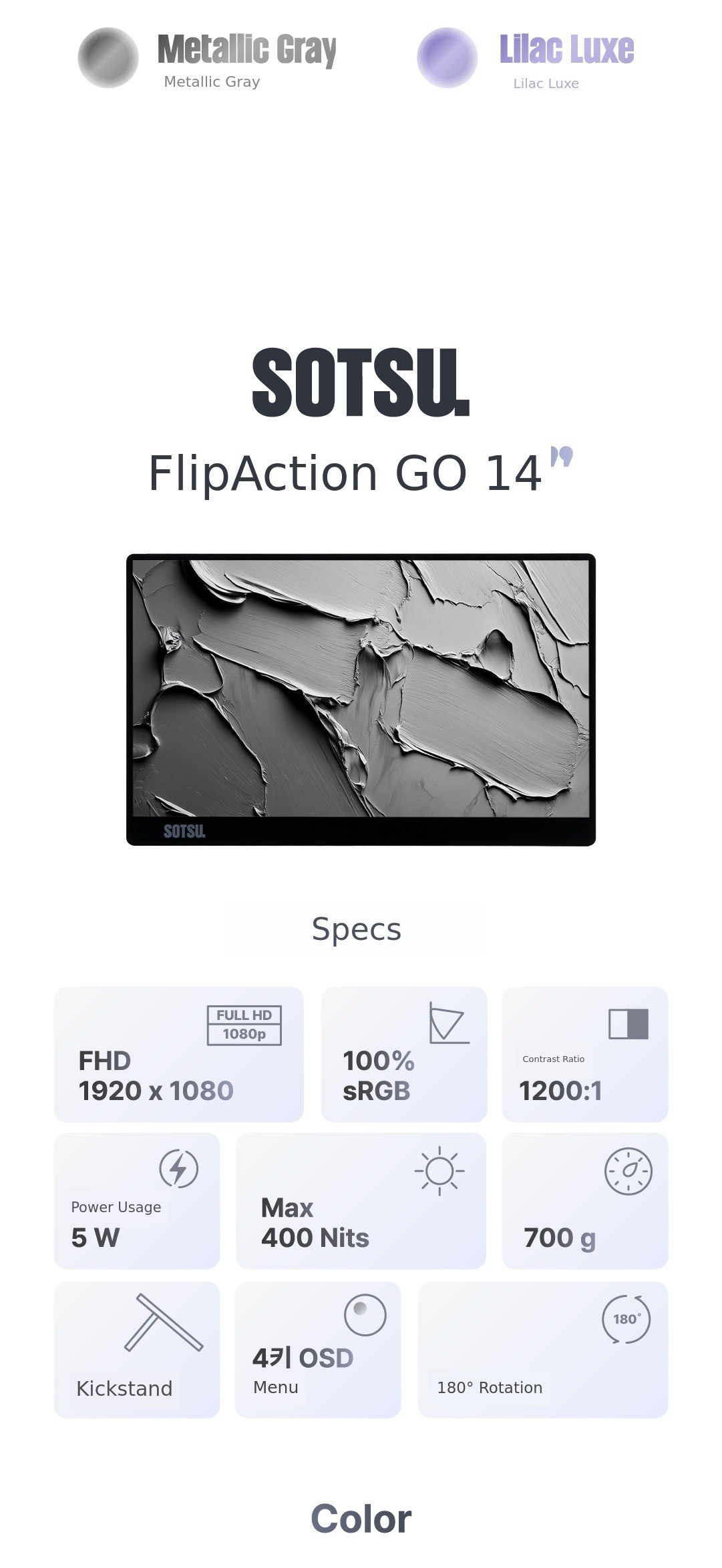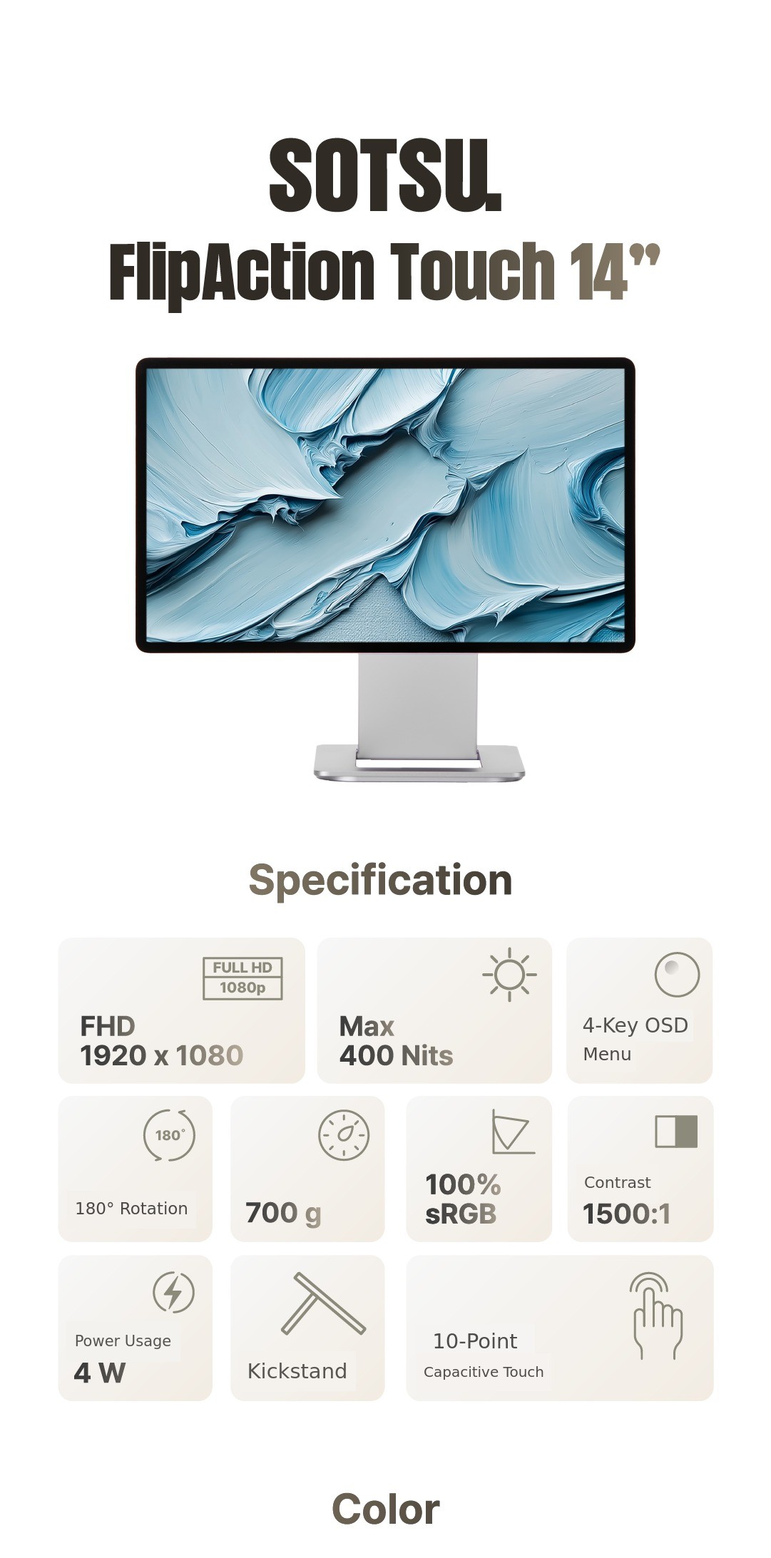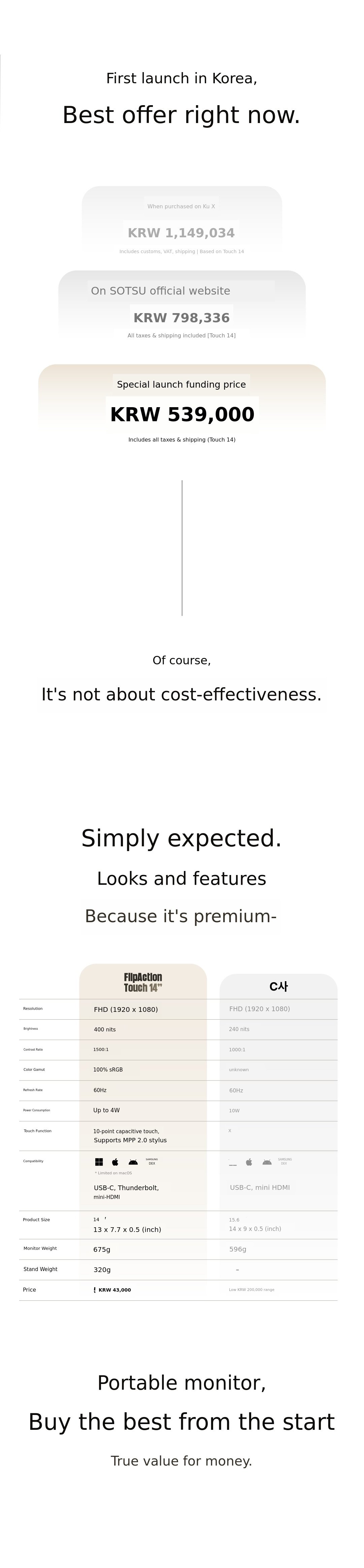 For the discerning Wadiz supporters who recognize great products before anyone else,SOTSU Portable Monitor is introduced. With outstanding performance and features, as well as a sophisticated design, it provides the best immersive experience anytime, anywhere. :)