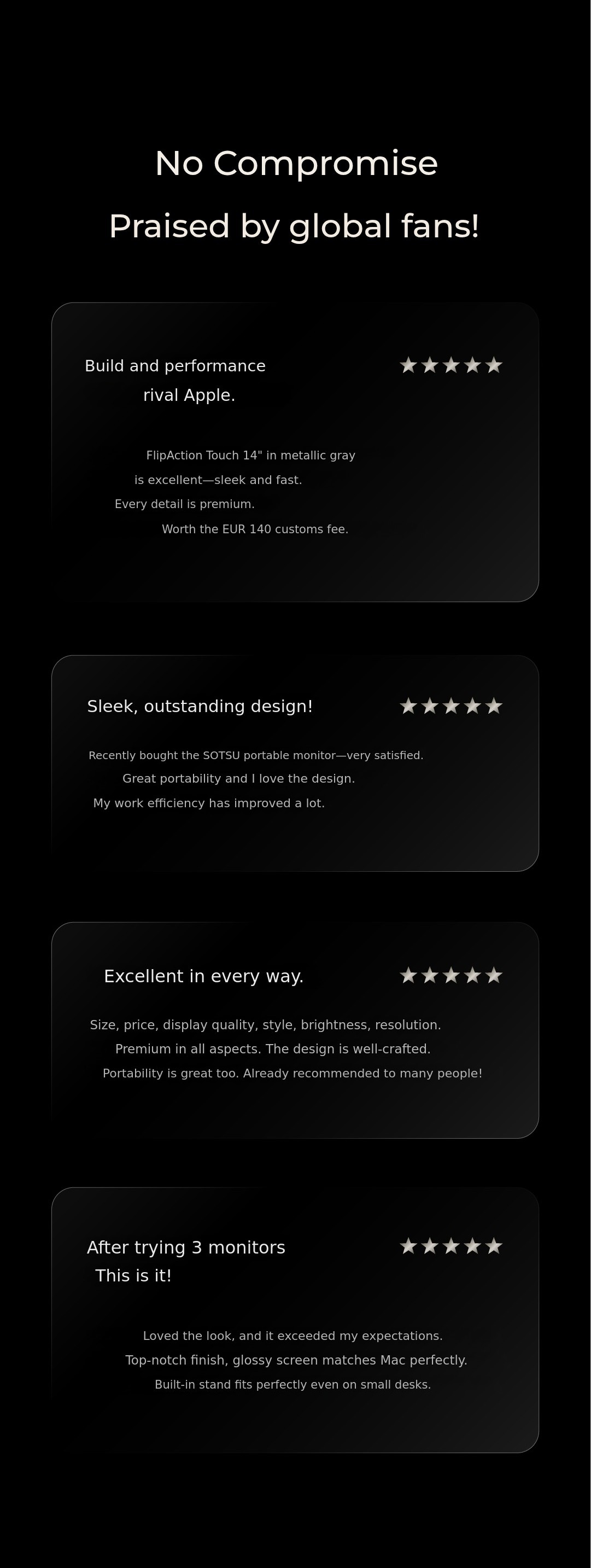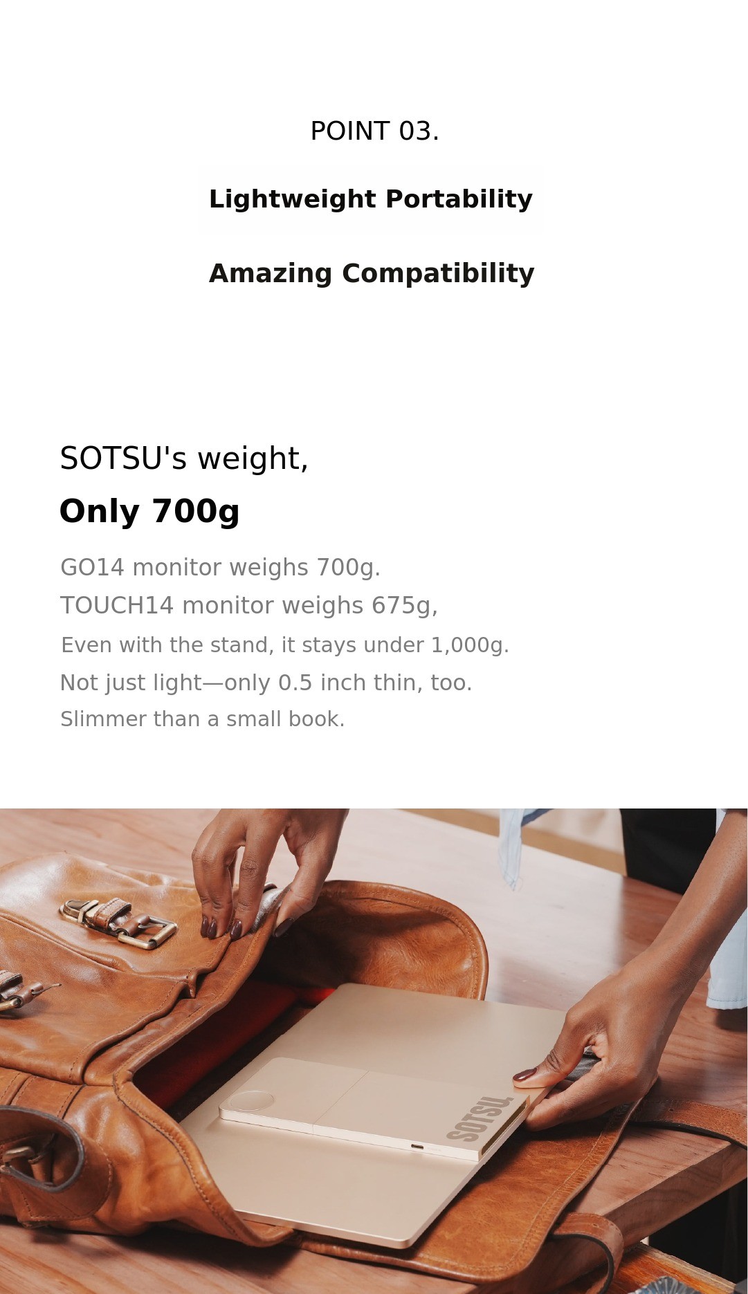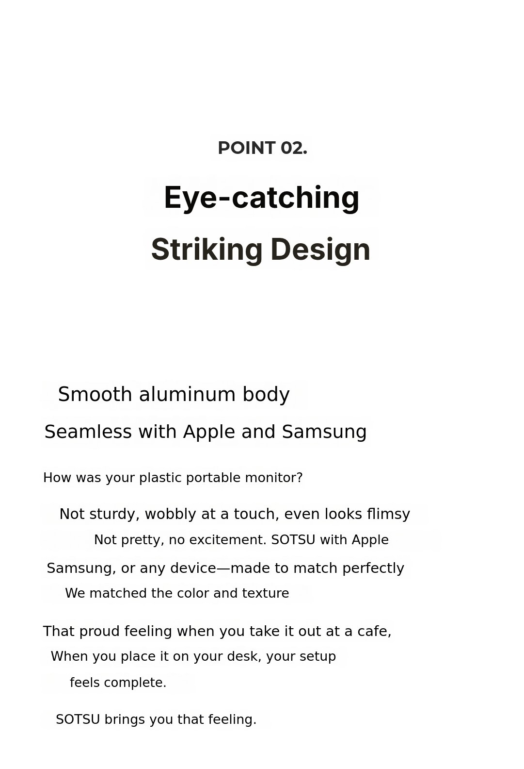 For the discerning Wadiz supporters who recognize great products before anyone else,SOTSU Portable Monitor is introduced. With outstanding performance and features, as well as a sophisticated design, it provides the best immersive experience anytime, anywhere. :)
