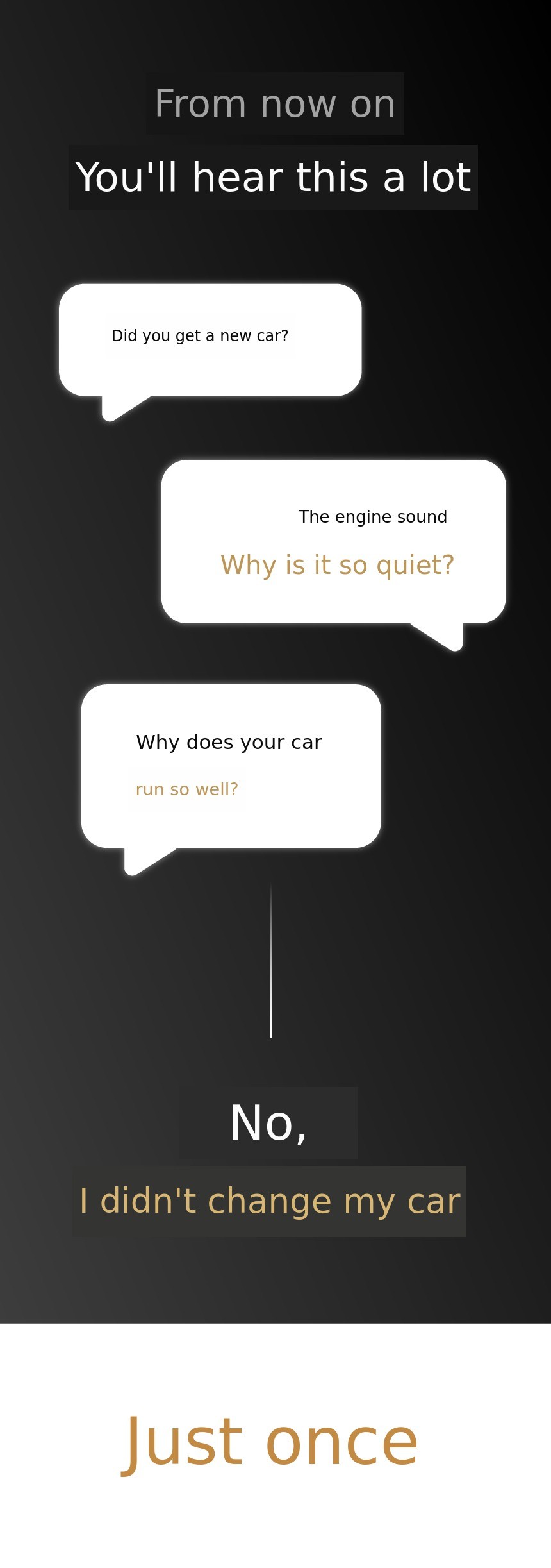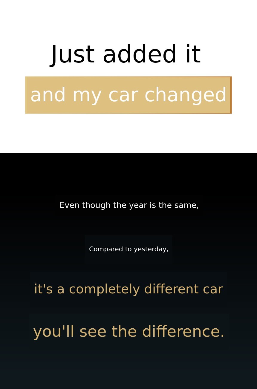 Second time – After injecting it following an oil change, you can definitely feel the car becoming lighter.