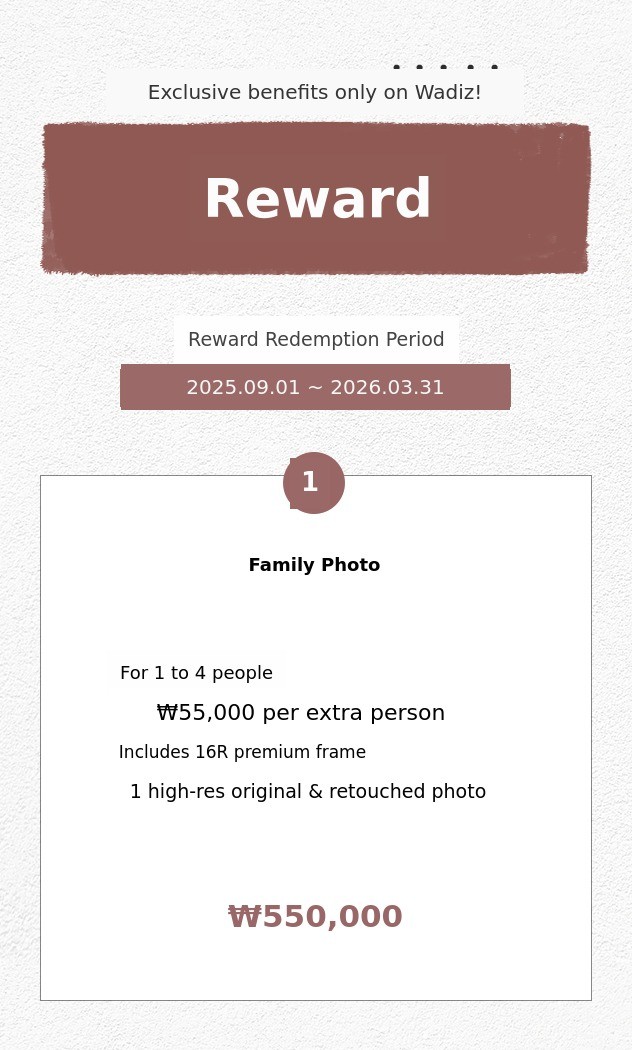 ※ For family photos, you can choose your preferred frame on the day of the shoot.