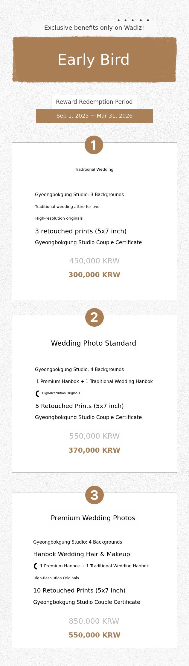 All-in-One Service – One-stop service including hanbok rental, hanok studio, photography, and retouching.